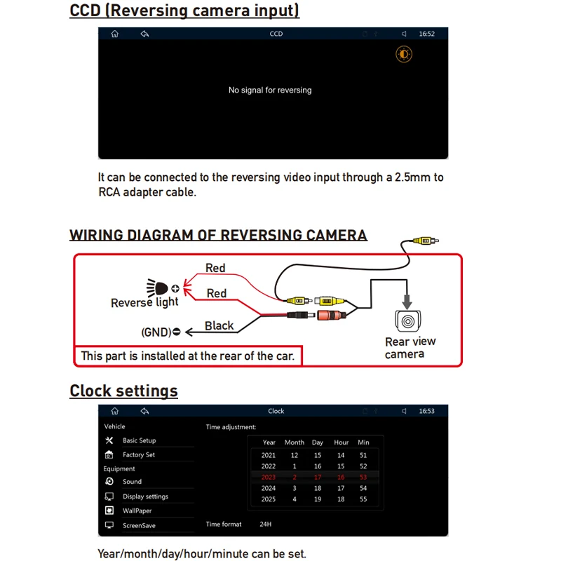 The assembly is done quickly on the board and you can power it from any charger type c. android auto starts up very quickly and connects to the phone just as quickly. The display has a generous size and the touch screen has a great response. The rear camera makes parking a lot easier. I recommend!