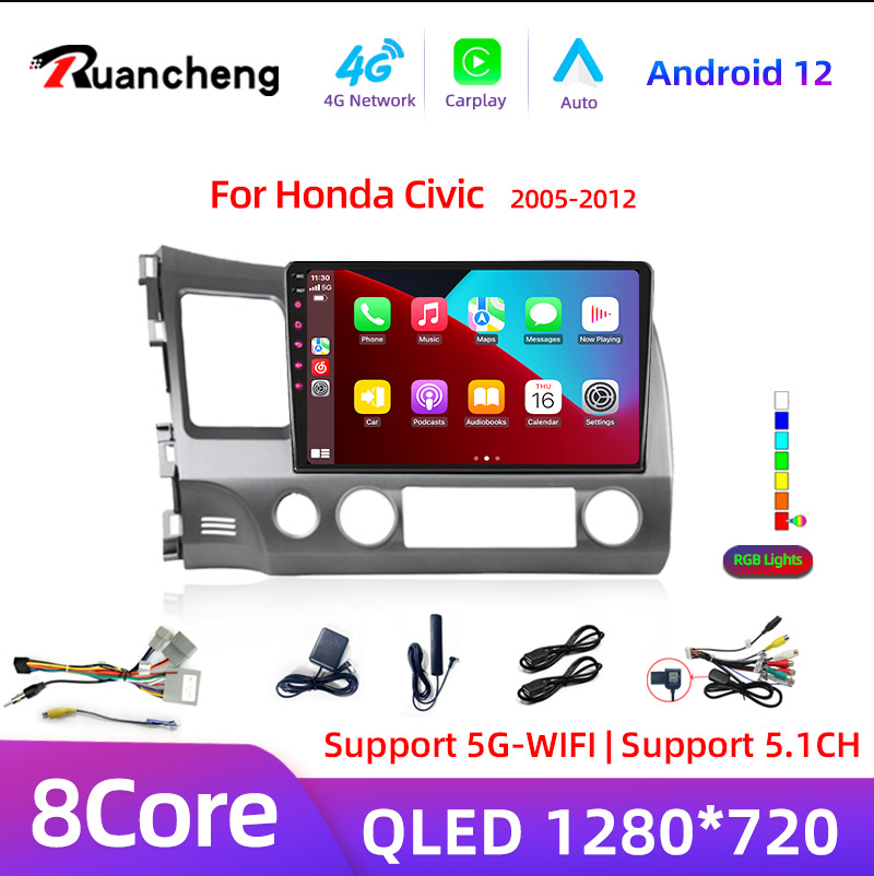Rc V1pro AI Voice Carplay Car Radio For Honda Civic 2005-2012 Multimedia video Player Android Auto 4G GPS 2 din autor
