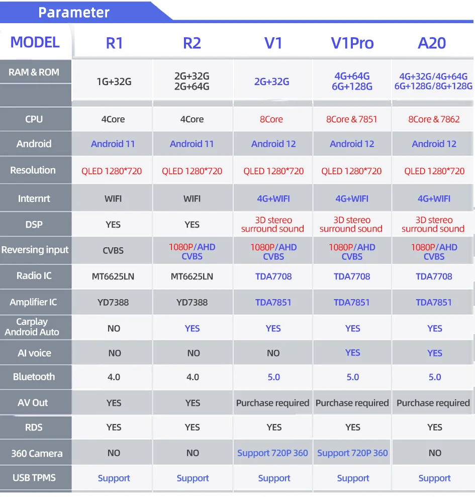 V1/V1Pro model features: