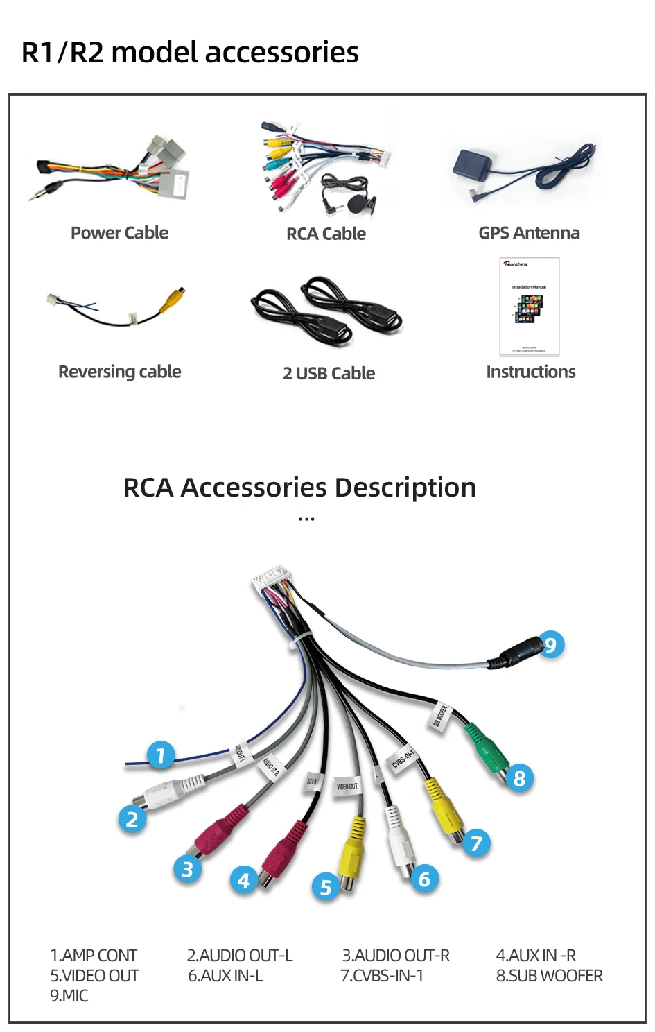 2. Reversing camera: 1080P/AHD/CVBS CAM (optional)