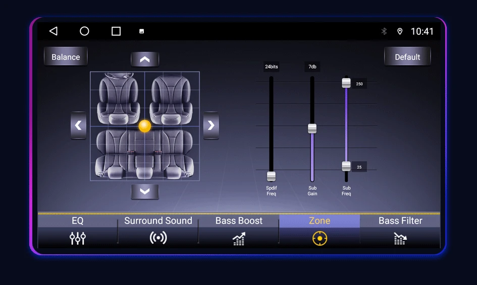 The Android stereo system supports the video output of the display, and we also support the subwoofer signal output.