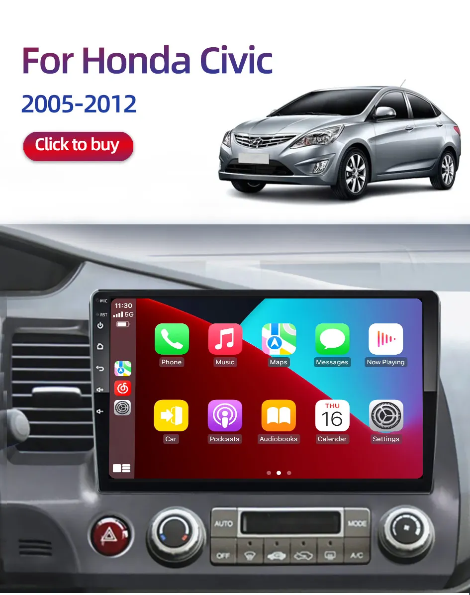 Rc V1pro AI Voice Carplay Car Radio For Honda Civic 2005-2012 Multimedia video Player Android Auto 4G GPS 2 din autor