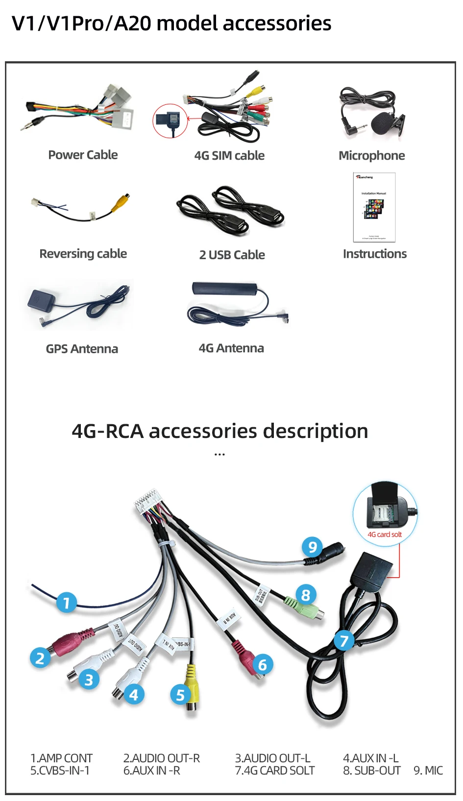 5.1CH,REAR R OUT,REAR L OUT,CENTER OUT,(V1/V1Pro/A20 Models Only)
