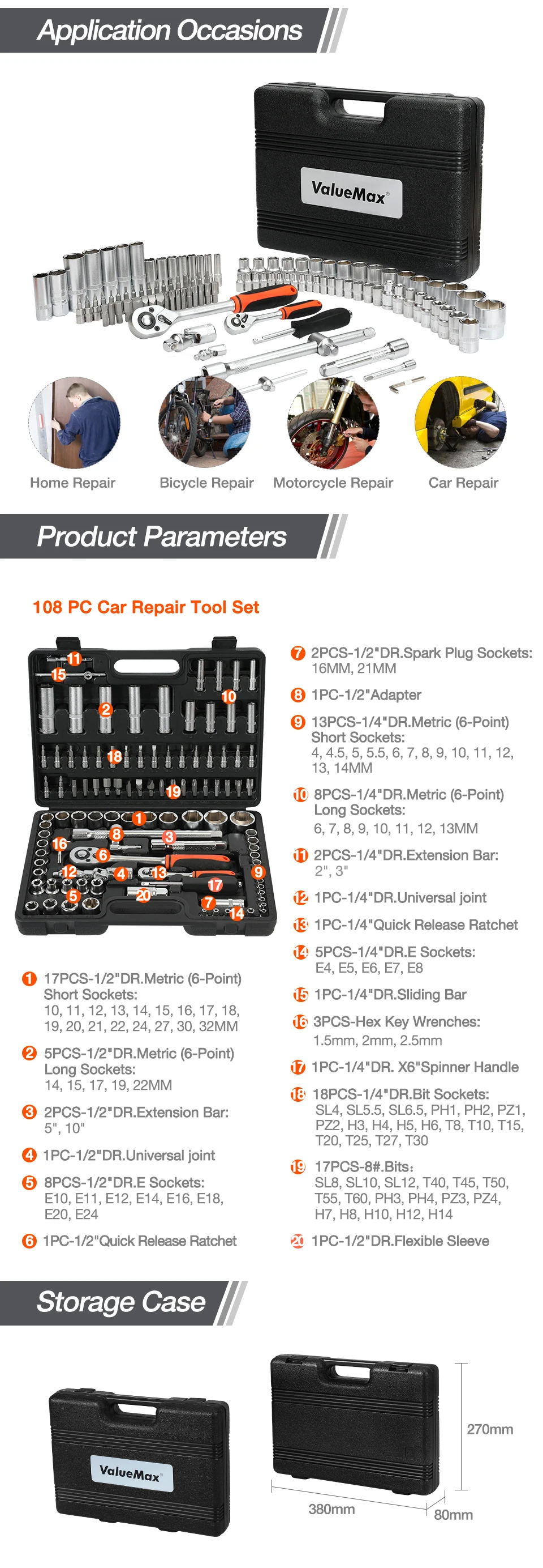 Buy 108PC Hand Tool Sets Car Repair Tool Kit Set Workshop Mechanical Tools Box for Home Socket Wrench Set Screwdriver Kit at www.carforaccessories.com! Free shipping to 185 countries. 45 days money back guarantee.