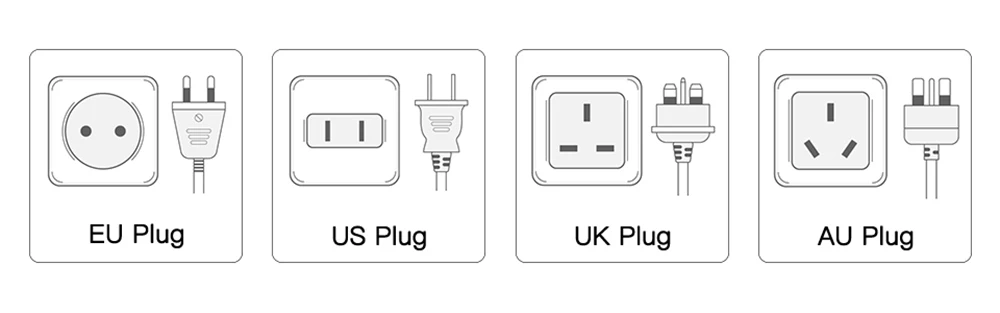 *For the power adapter plug options, EU/US/UK/AU optional *If you are not sure which type of plug to choose, please refer to the picture below