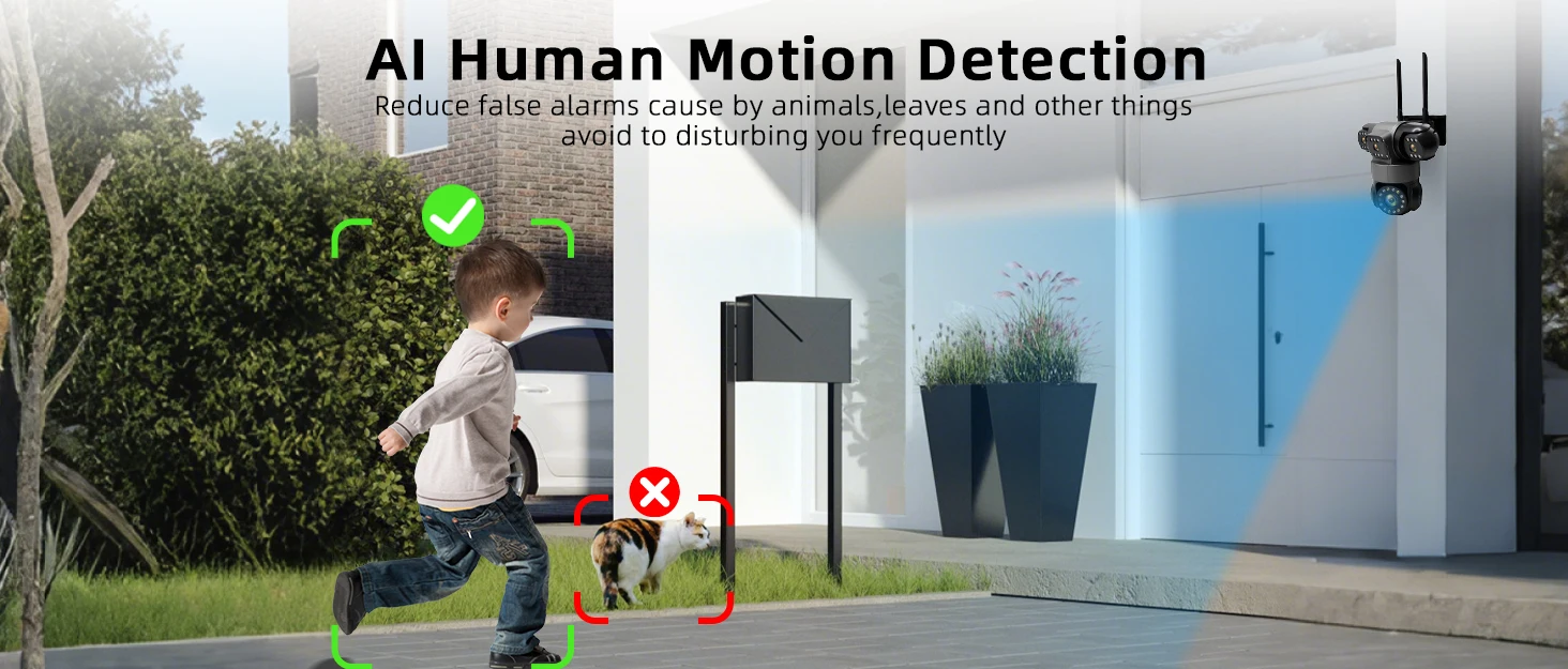 This camera is really smart. The AI human recognition function is very accurate, and it sends notifications when it detects a real person. This feature alone makes this system truly useful. The motion tracking function is also excellent, smoothly tracking movement within its field of view. Two-way voice communication is clear, allowing you to talk to delivery drivers or remotely deter unwanted visitors. It feels like having a smart security guard on duty 24/7.