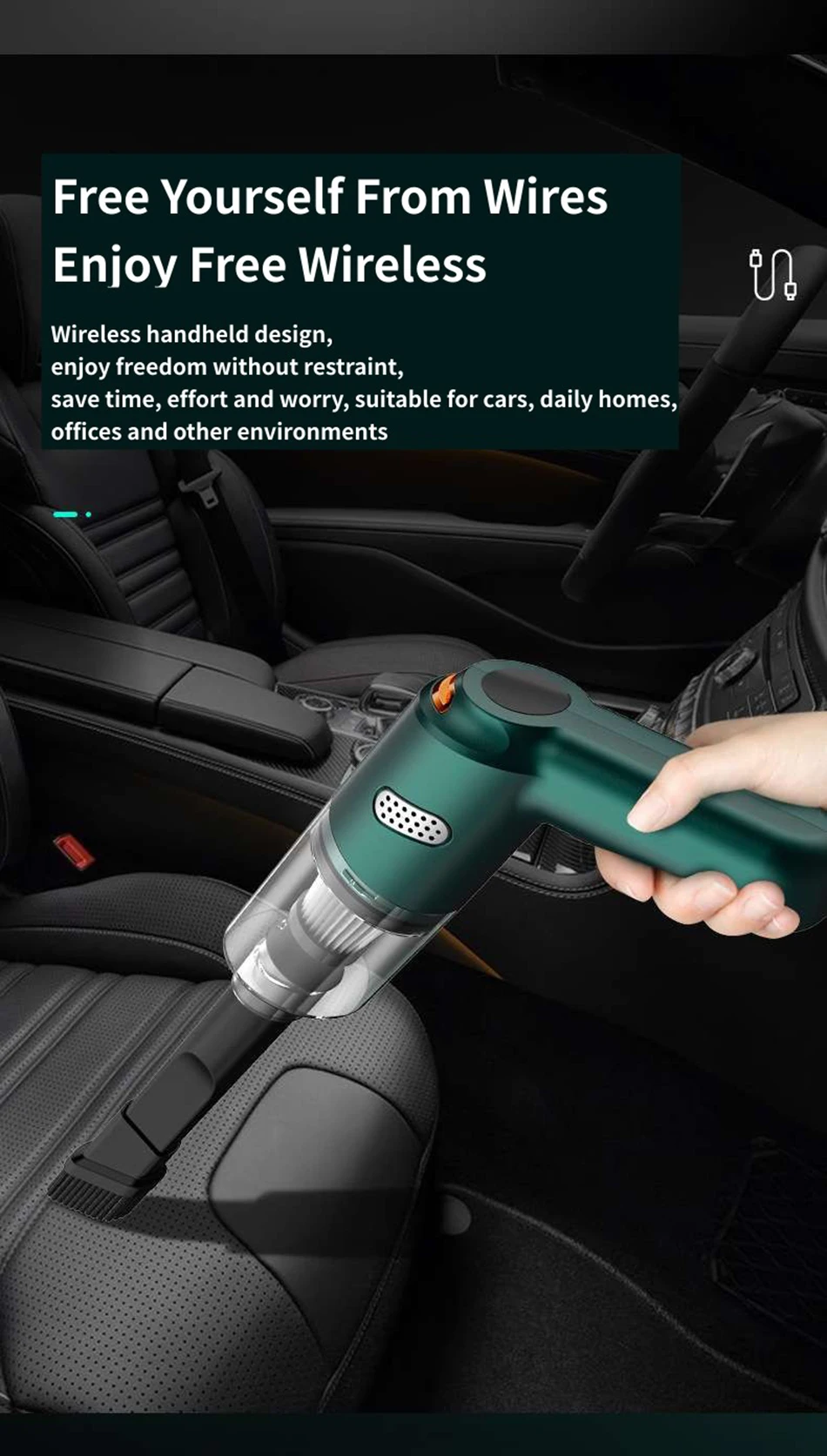 Enjoy Free Wireless Wireless handheld design,enjoy freedom without restraint,save time,effort and worry,suitable for cars,daily homes,