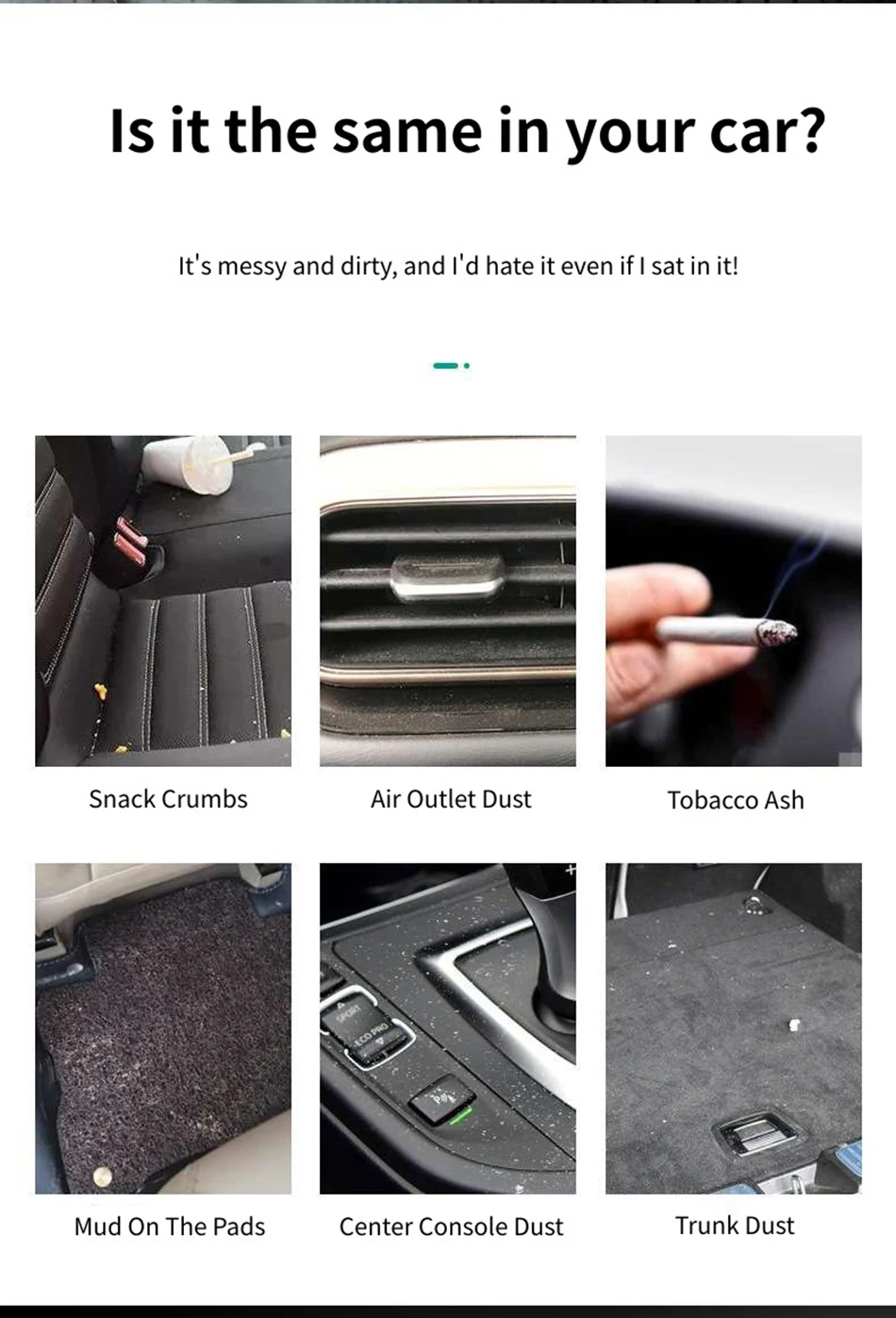 Snack Crumbs/Air Outlet Dust/Tobacco Ash