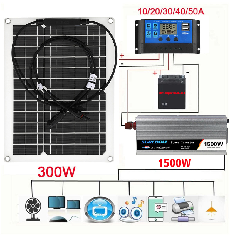 Buy 1500W Solar Power System Kit Battery Charger 300W Solar Panel 10-60A Charge Controller Complete Power Generation Home Grid Camp at www.carforaccessories.com! Free shipping to 185 countries. 45 days money back guarantee.