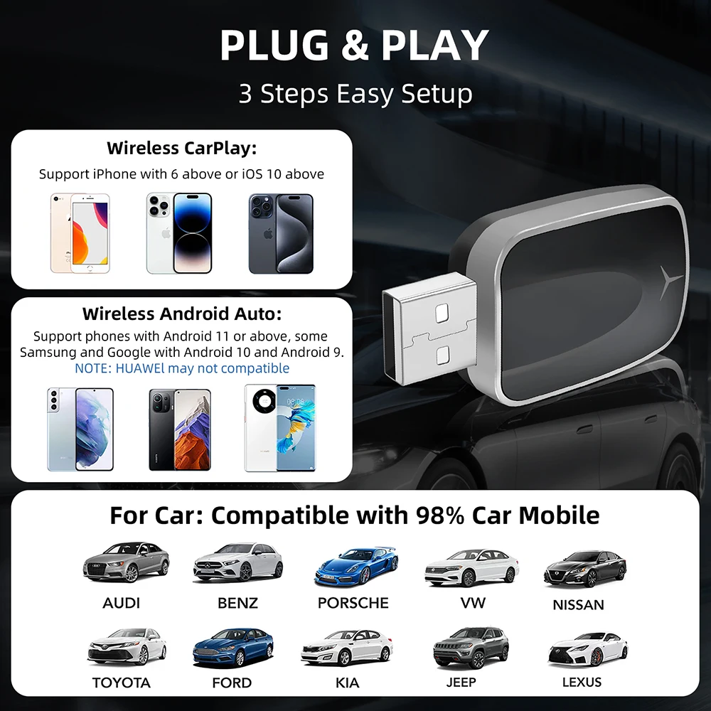 2. Wireless CarPlay, Convert factory wired CarPlay to wireless, Support Siri,GPS Navigation and so on.