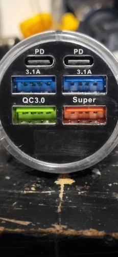 Seems to be of high quality. Product is labeled with specs. Input: Dc 12-24v Output: Qc 3.0 Super: 5v 3.1a 9v/12v 1.5a Usb3: 4.5v 3.1a Pd: 5v 3.1a The various port names refer to: Qc 3.0 is qualcomm fast charge Super is super fast charge Usb3 is lossless usb3.1 which is considered a high current standard charge Pd is usb-c high current standard charge