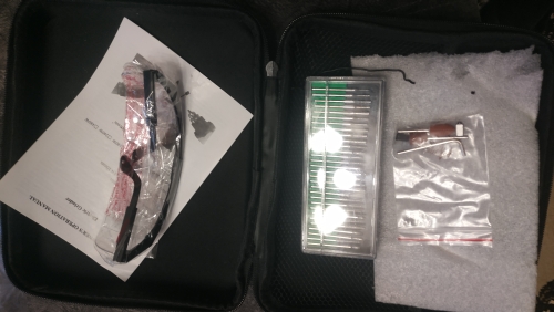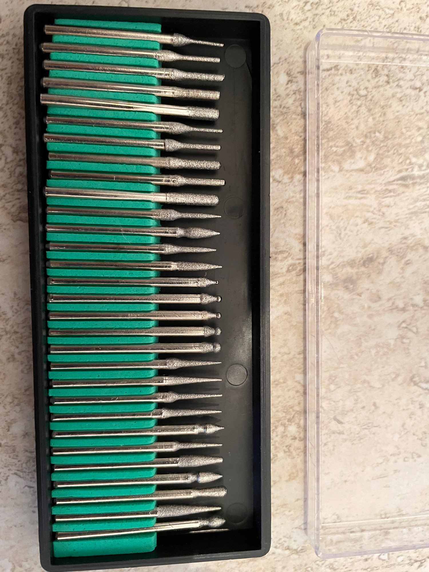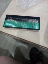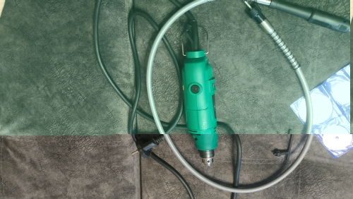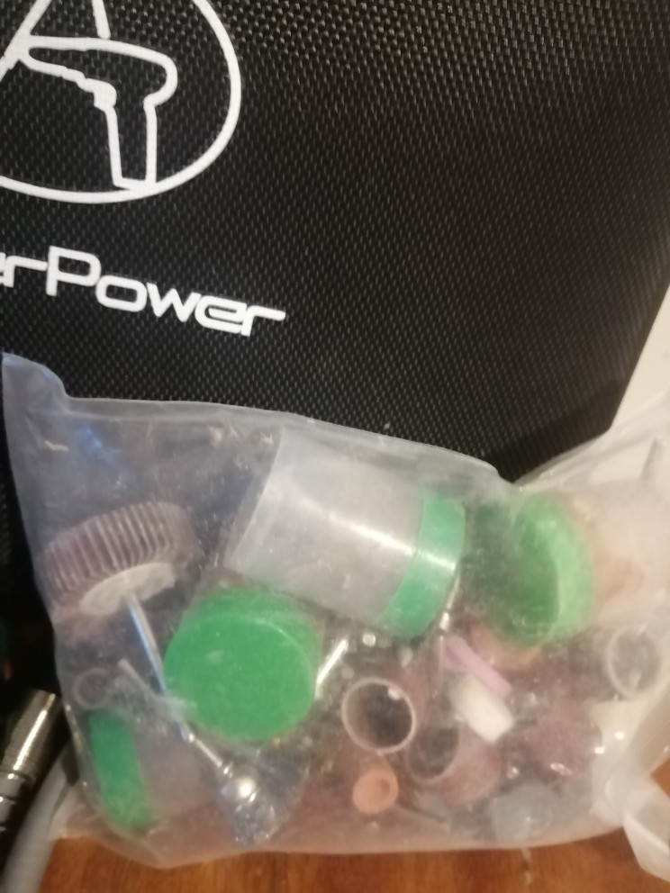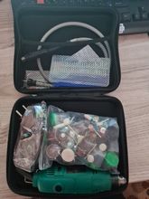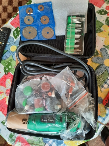 The drill is beautiful. Many attachments, glasses, case. Powerful. I liked it very much.