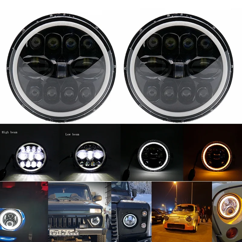 90W 7” LED Headlight With White Amber DRL