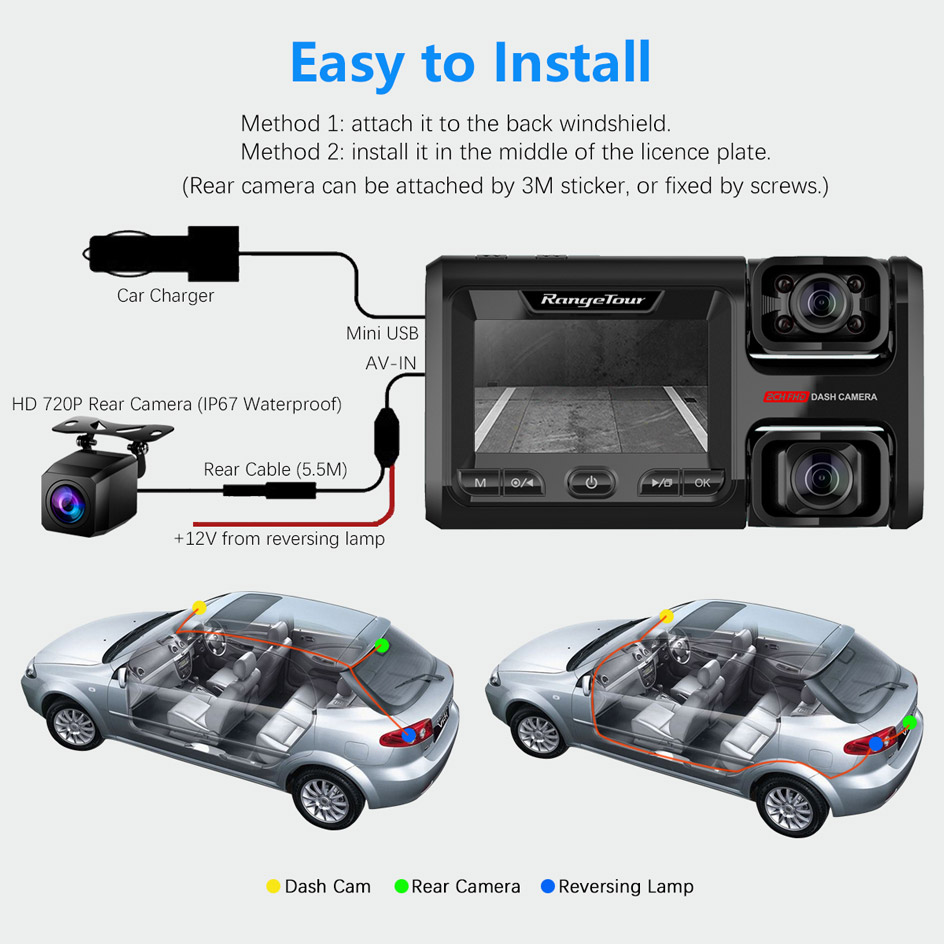 Front & Cabin 170 degree wide angle lens and Rear waterproof 160 degree wide angle lens offers a larger image, captures bigger scene for avoiding missing spot.