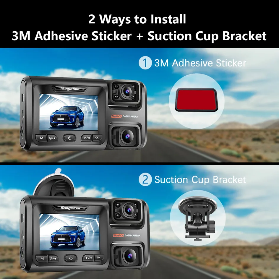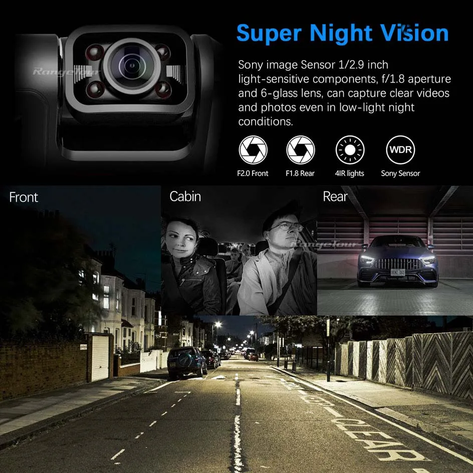 With 2K front camera + 1080P cabin camera + 1080P rear camera, the car camera can simultaneously record the ultra-clear front, cabin and rear roads.