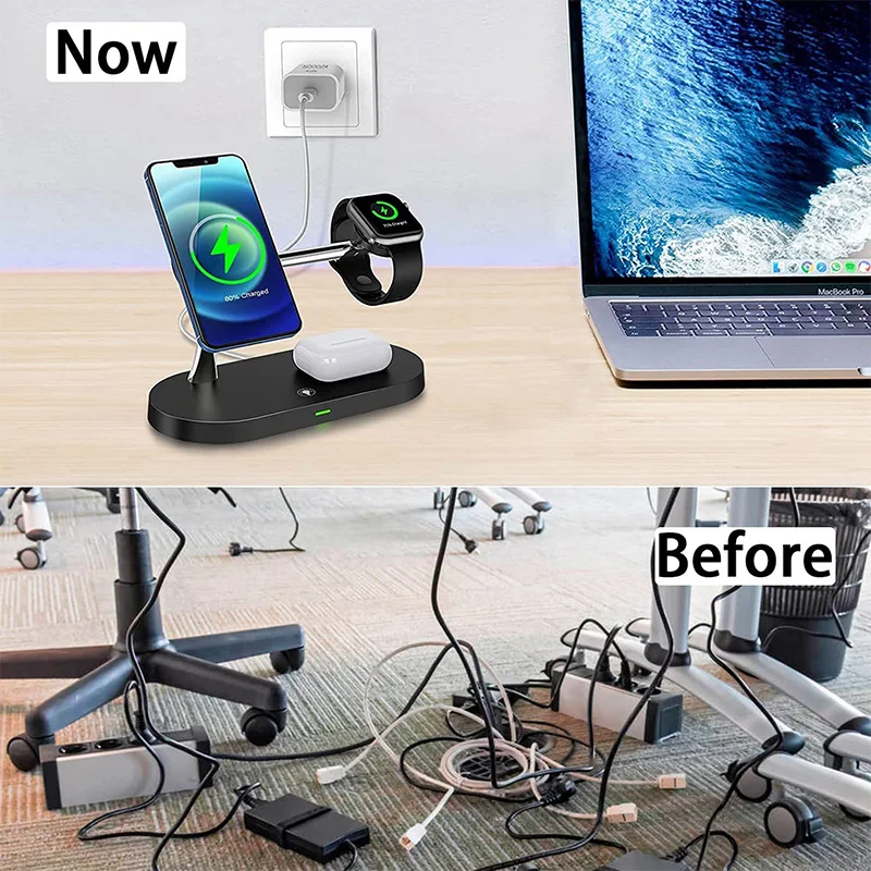 Wireless charging station can charge your for apple iwatch 2/3/4/5/6/SE/7/8/9【NOT for Samsung Watch】, Airpods Pro/2/3, phones at the same time, such as for iPhone 15/14 13/13 Pro/13 Pro Max/13 Mini/12/12 Pro/12 Pro Max/12 Mini