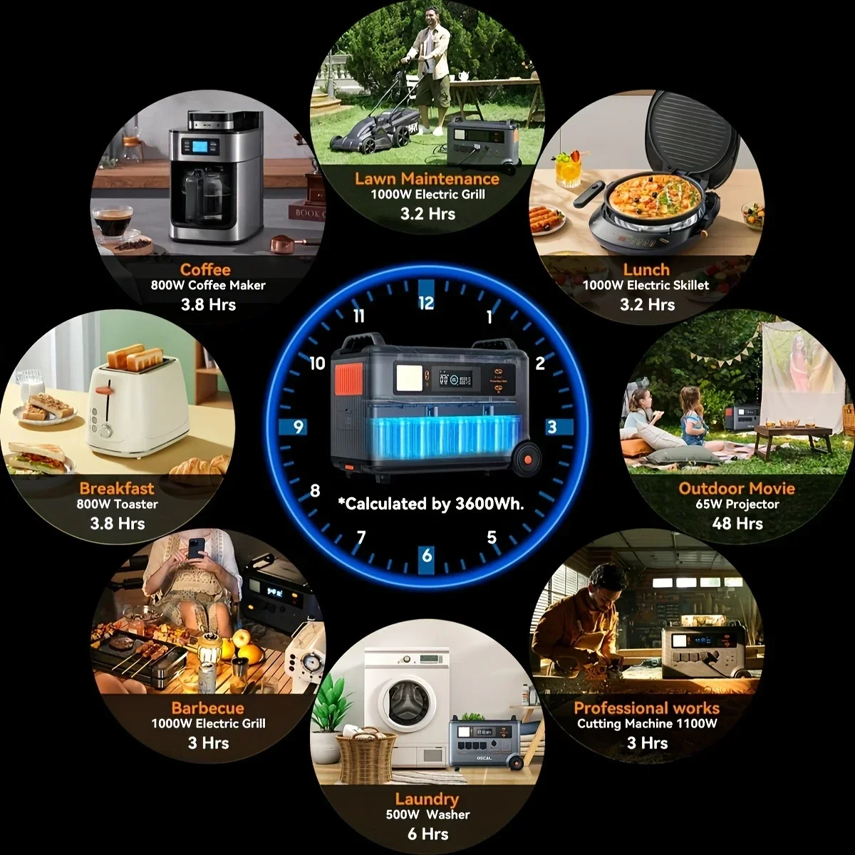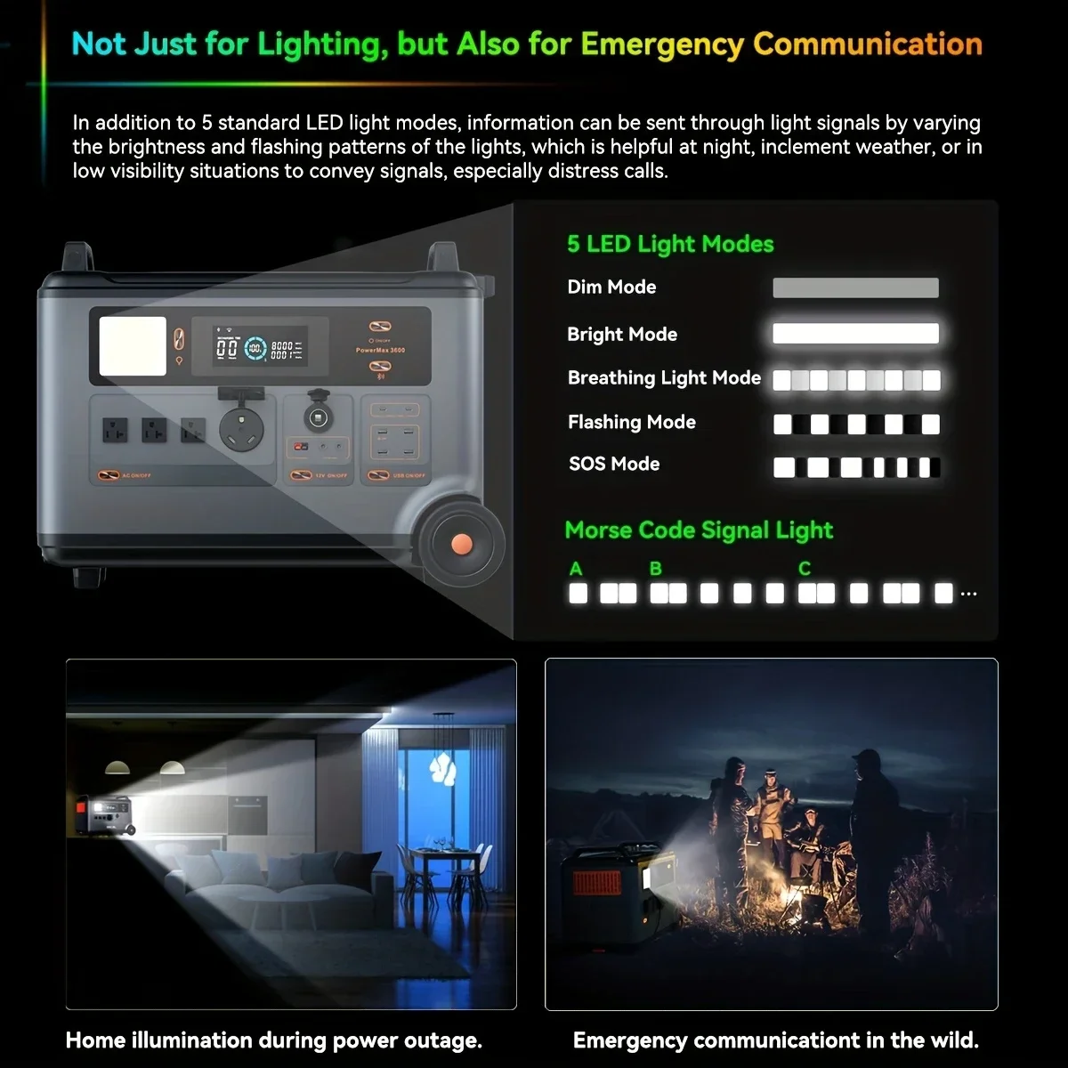 3600Wh Surge 6000W LiFePO4 PowerMax 3600 Portable Power Station, Expandable Solar Generator with 4xAC Outlets, 1.2H Full Charge