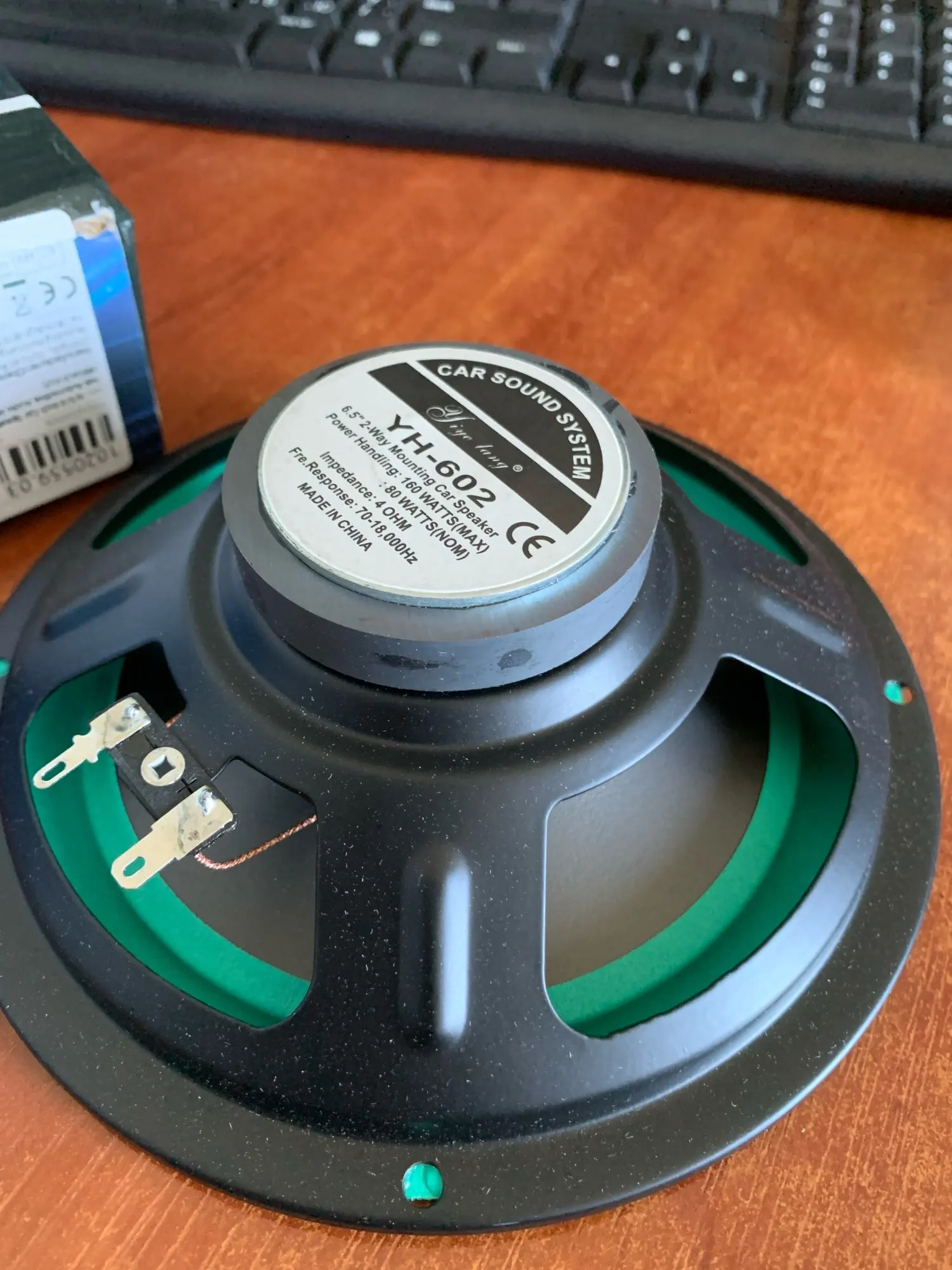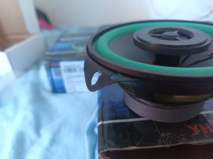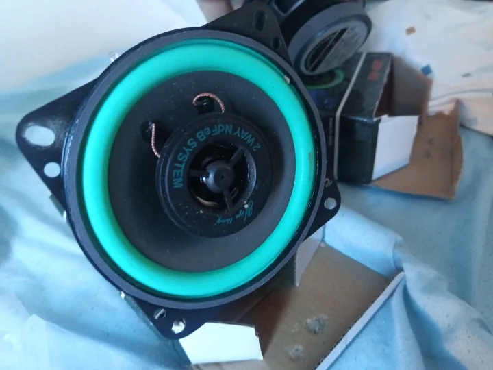 The speakers were hit at some point, one corner is crooked on both sides, more on one than the other. A minor issue, as long as they work well... Need to test