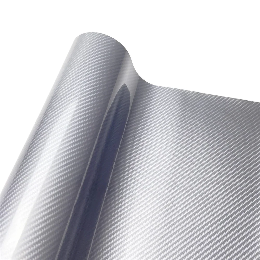6D Silver Car Stickers Carbon Fiber Vinyl Wrap Film Waterproof Sticker Car DIY Decoration Air Bubble Free Carbon Fiber Film