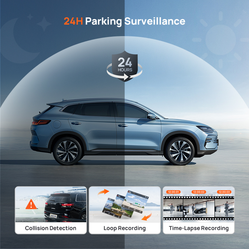 In the parking mode, upon detecting a collision, the G-sensor will activate the dash cam to record a 30-second video, providing firm evidence of the incident scene
