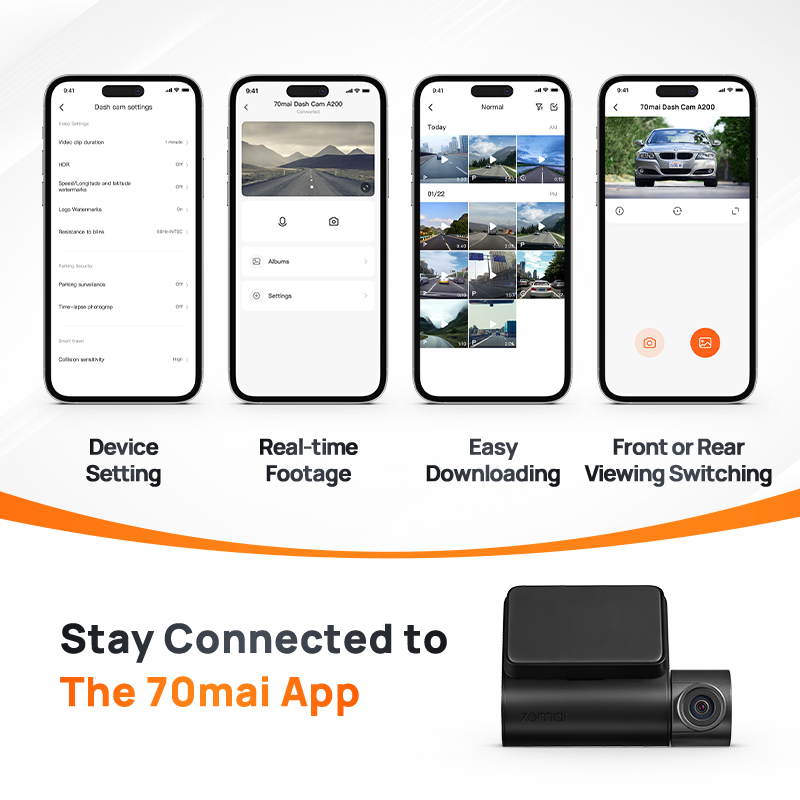 With G-Sensor, 70mai dash cam A200 automatically records the emergency situation and saves the videos for you.