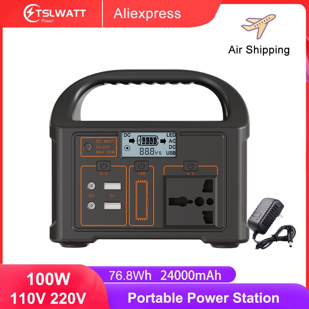100W Portable Power Station 110V 220V 24000mAh Solar Electric Generator Outdoor Power Bank For Camping Travel Emergency Energy
