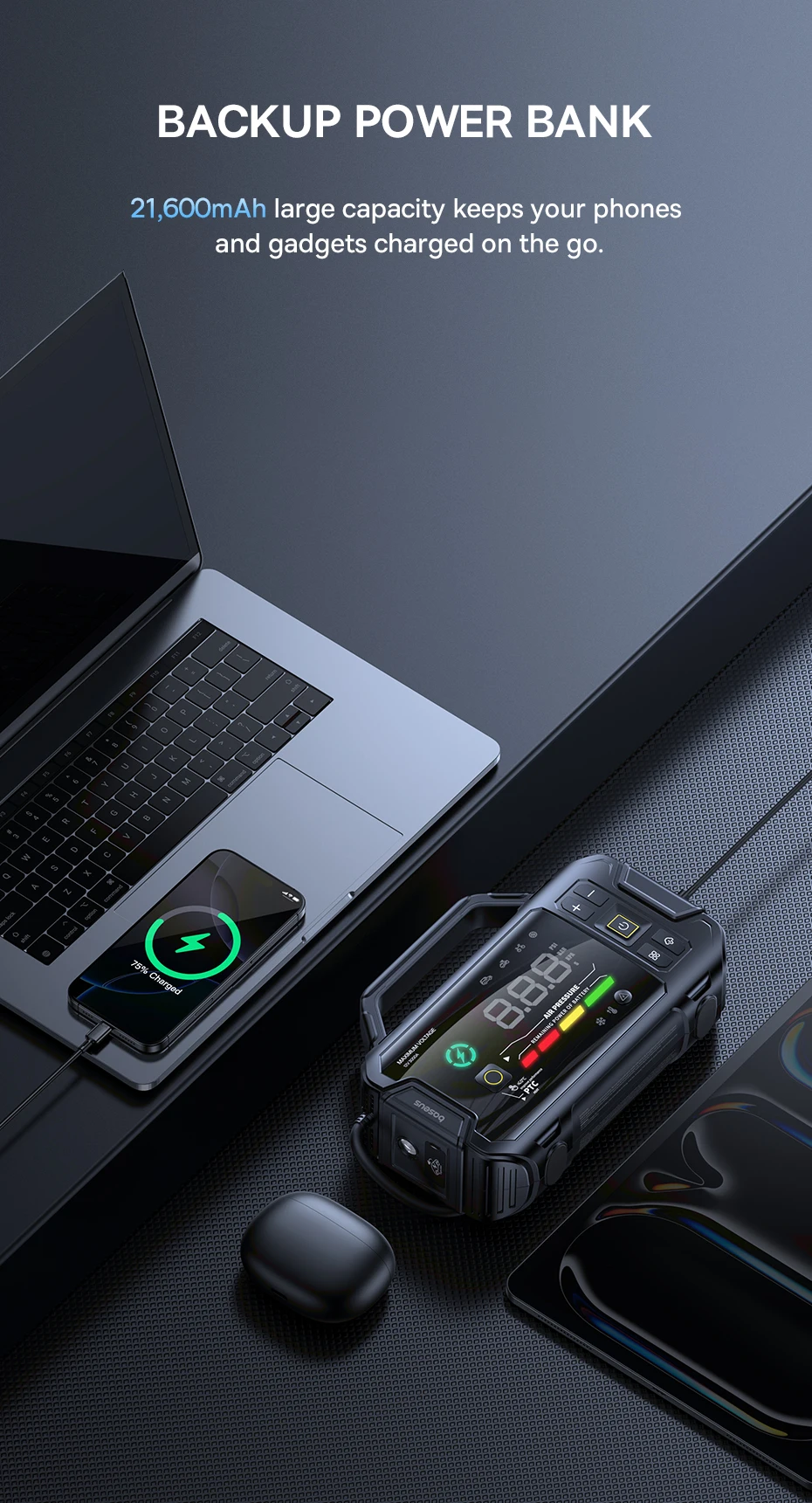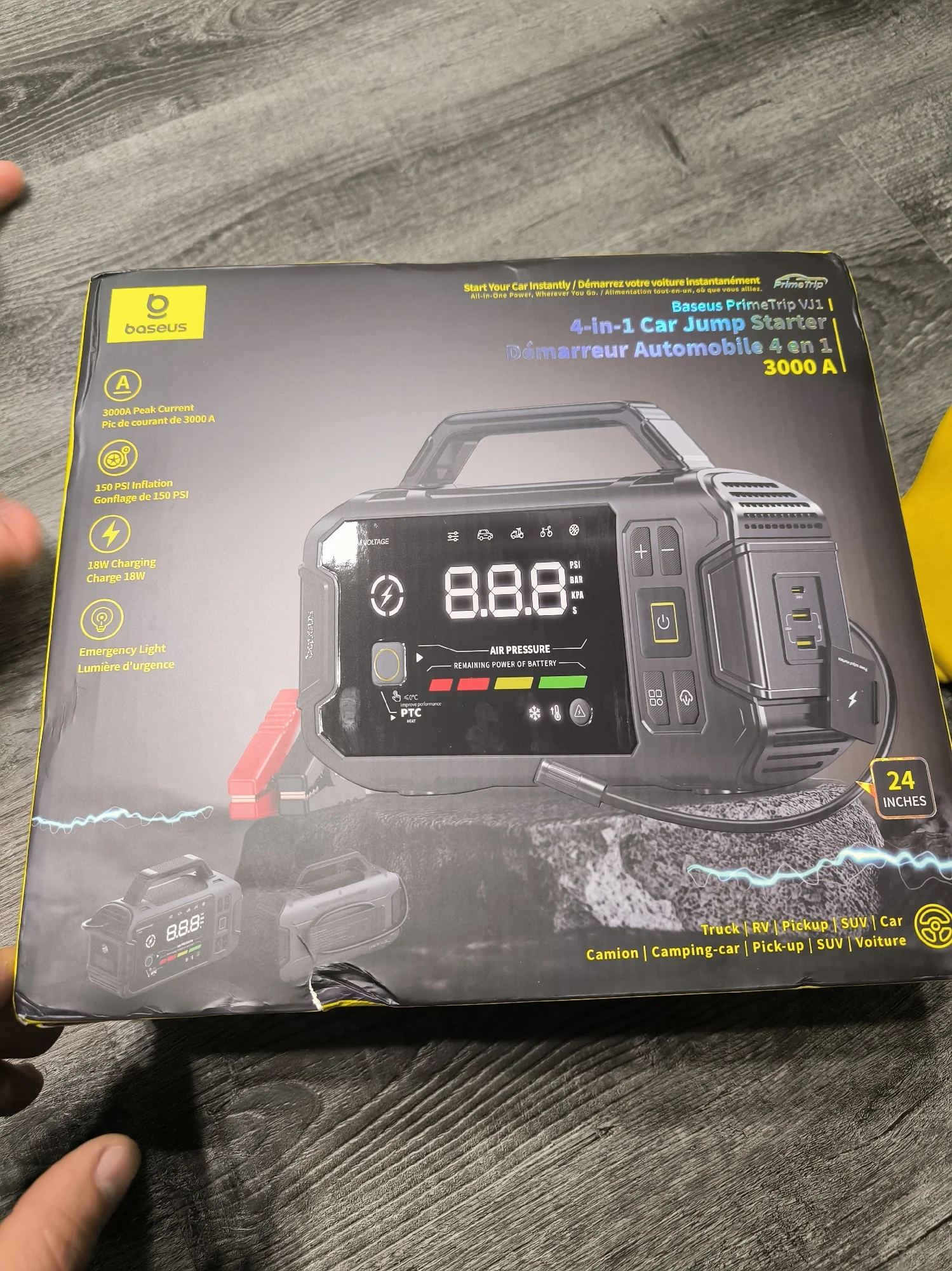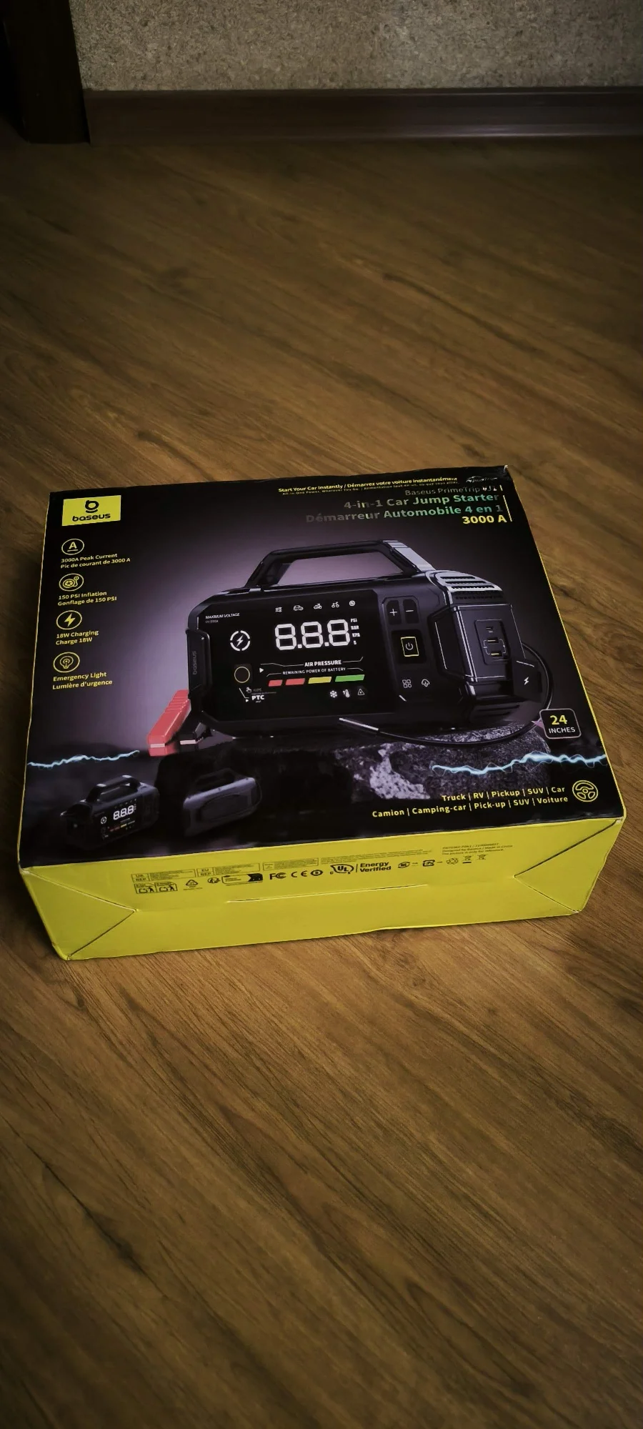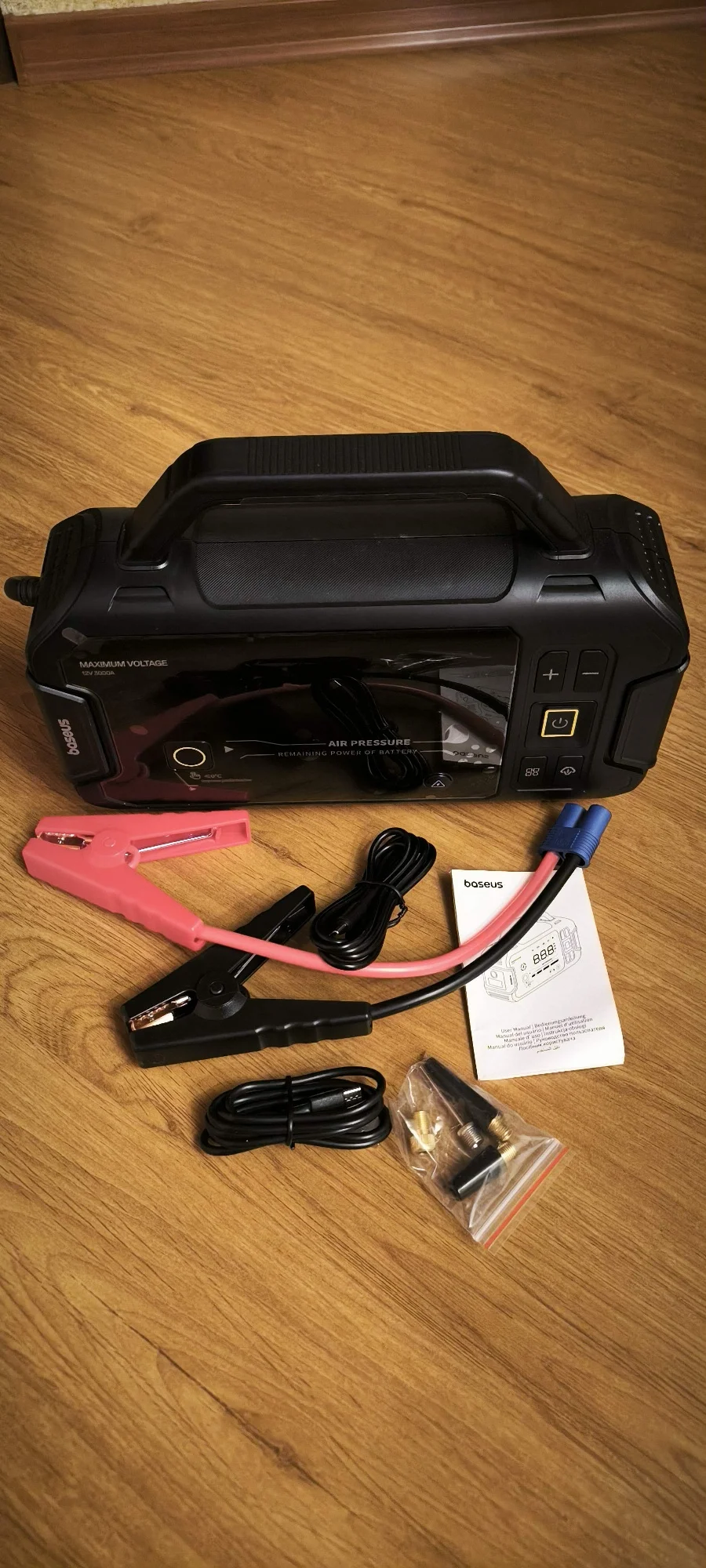 Delivery on time via Russian Post. Well packaged. Larger in size than I expected, quite heavy, made with high quality. Overall, it matches the description. As a personal note, I found the power bank function to be a drawback. Only the starter can be charged via Type-C, and even then not very quickly; it cannot be used to charge other devices. USB Type-A is quite slow and not convenient for charging modern electronics.