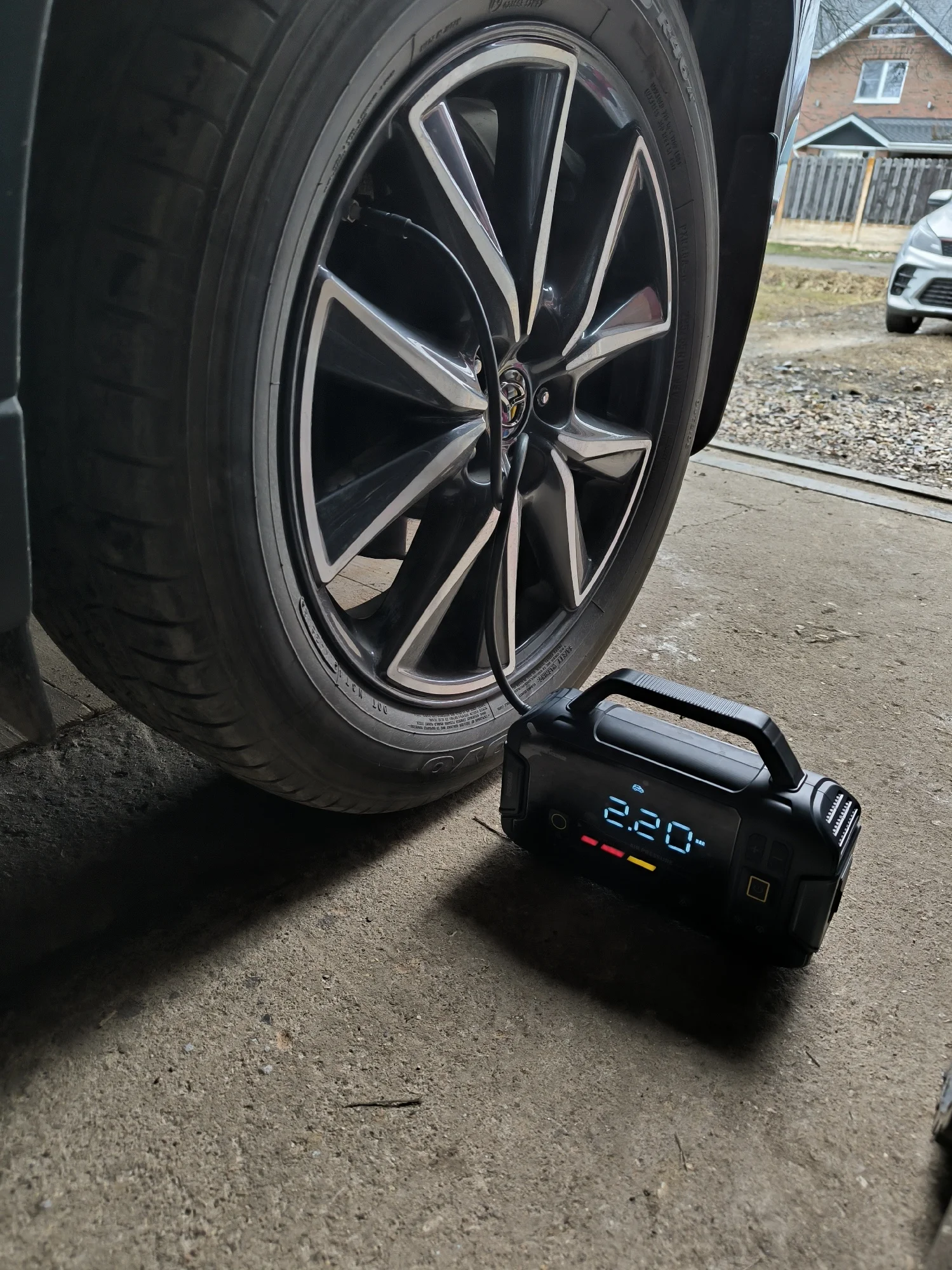 5+ We inflated a pair of tires from scratch, started a minibus, a Touareg 3.0, and only one charging port died...