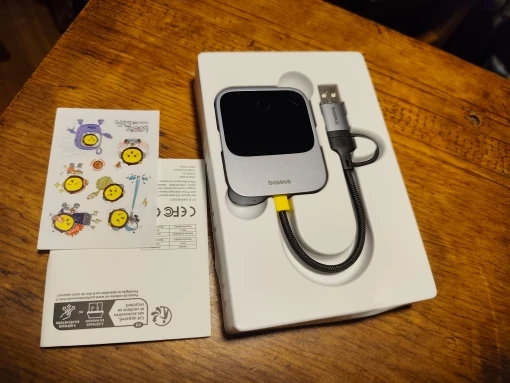 The packaging is crushed, but everything inside is intact. I'm not talking about the quality because it's Baseus. Connected instantly, works fine. Thanks to the seller, I recommend it.