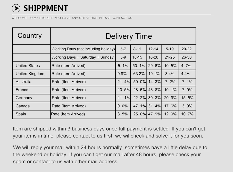 *You can submit refund requests within 15 days after the guaranteed period for delivery (45 days) has expired. You can do it by sending a message on Contact Us page