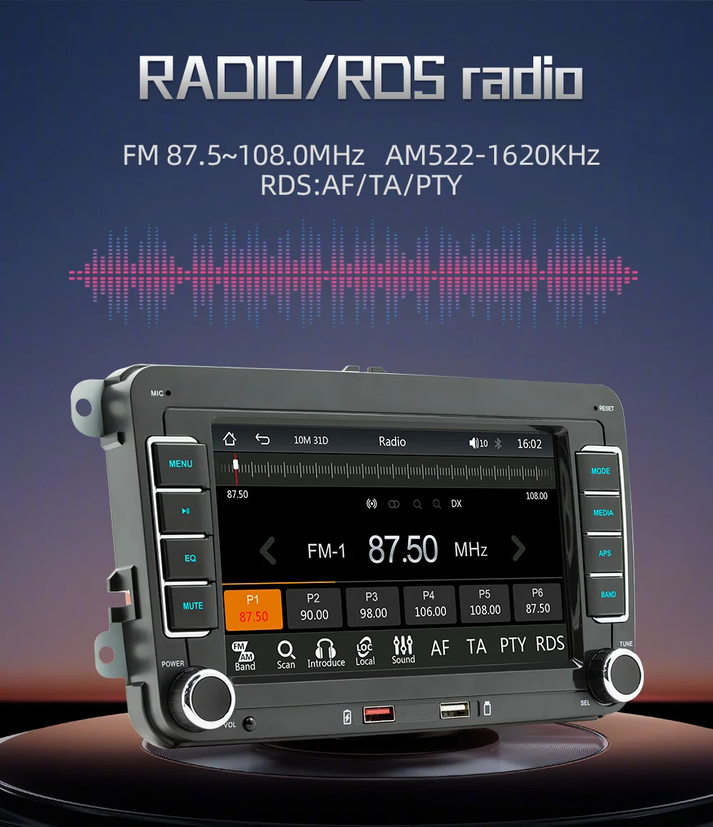 BQCC For Volkswagen 7″ HD Car MP5 Player FM BT Colorful lights RDS Radio Mirrorlink USB charging Wireless Android AUTO/ Carplay