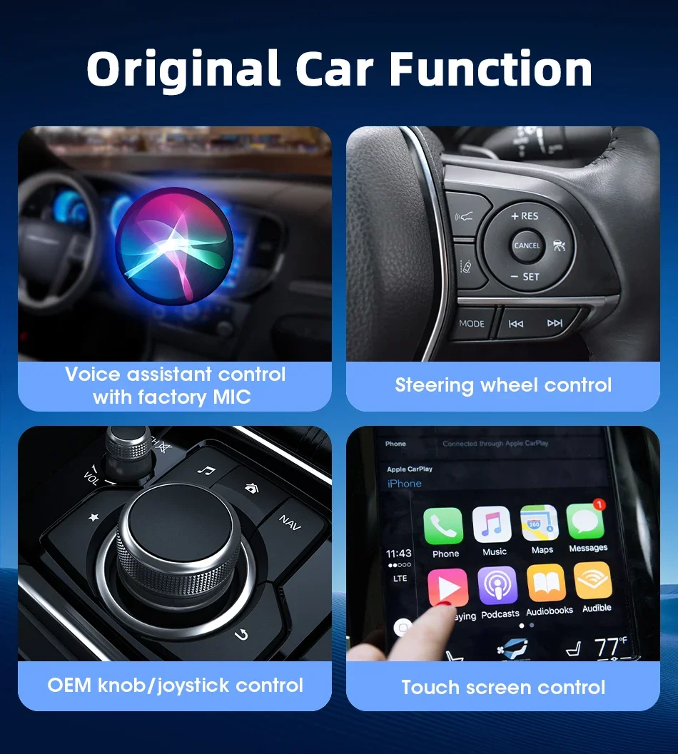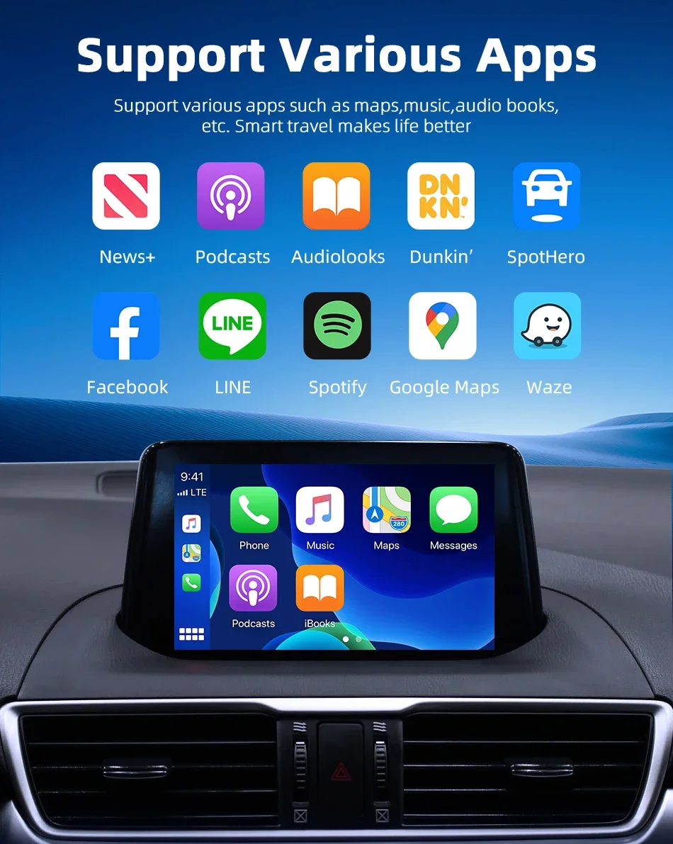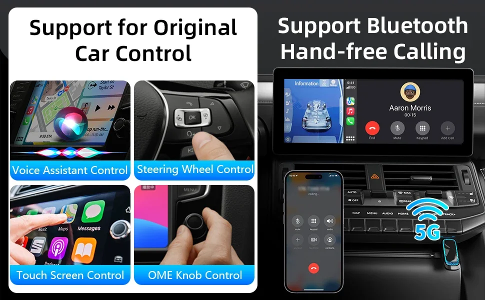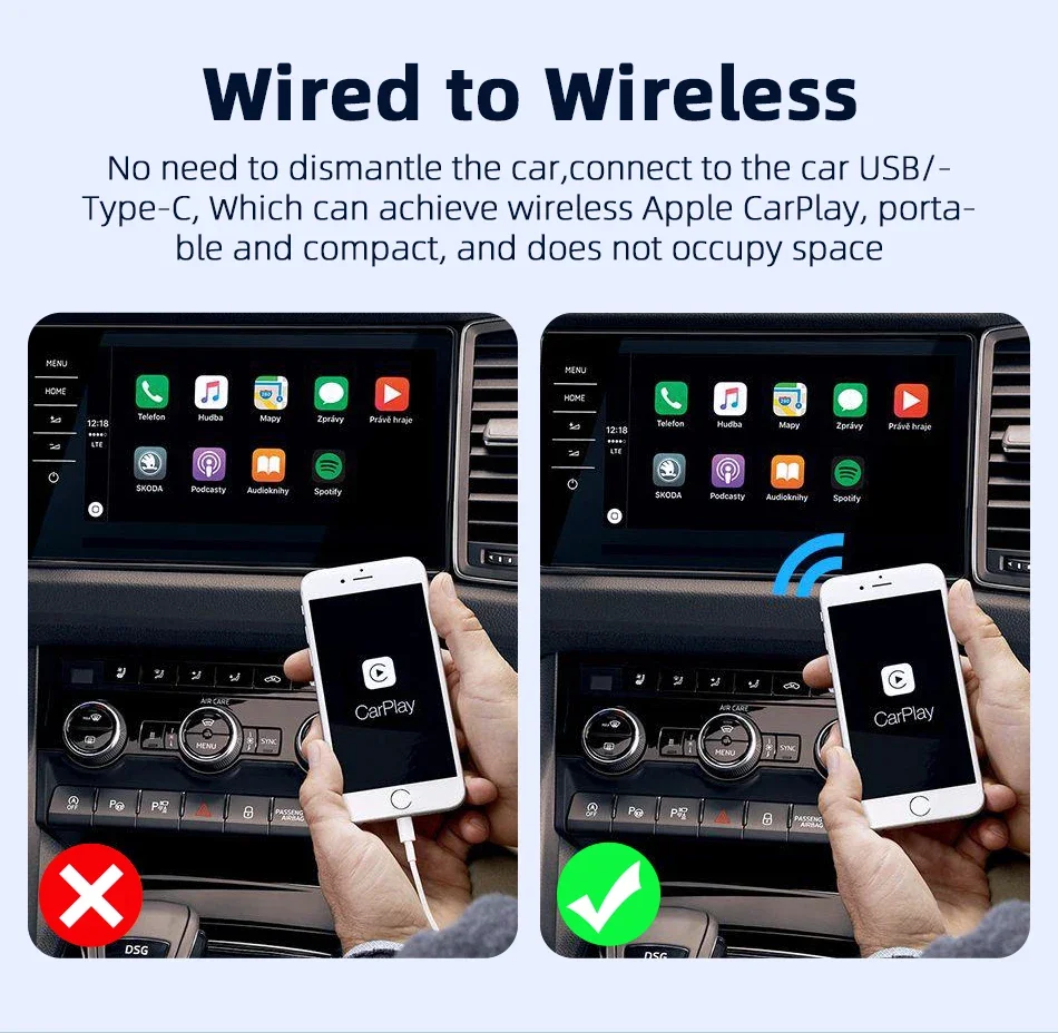 🚗【Retains original vehicle operating controls】This wireless carplay dongle allows you to enjoy the full CarPlay/Android Auto features including navigation, music, calls, messages, Siri and more without the need to connect your cell phone with a cable. Carplay wireless adapter retains the original screen touch, buttons, knobs, and voice controls to bring you a smarter driving experience.