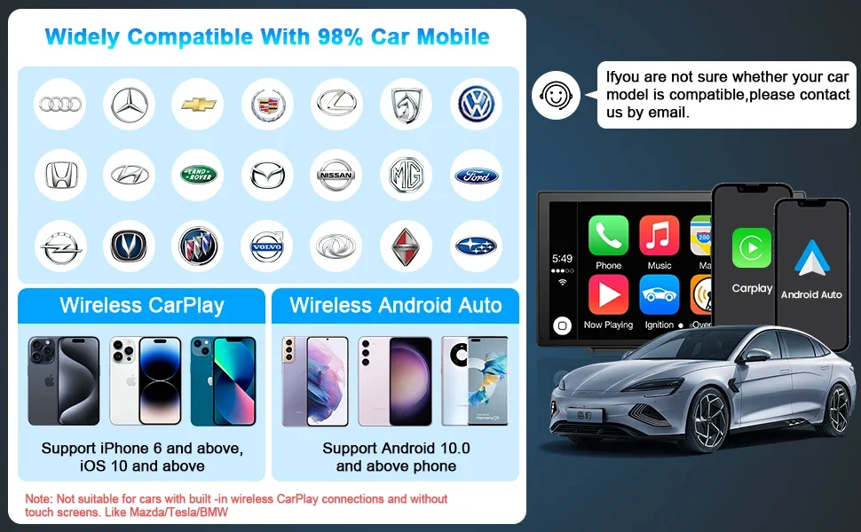 🚗【Universal Compatibility】Wireless carplay adapter is compatible with over 800 2016+ models. IOS 10 and Android 11 and above are recommended for optimal performance. The carplay adapter also comes with a USB-A to USB-C/USB-A cable, so you can use our carplay wireless adapter regardless of whether your car’s interface is USB or USB-C.