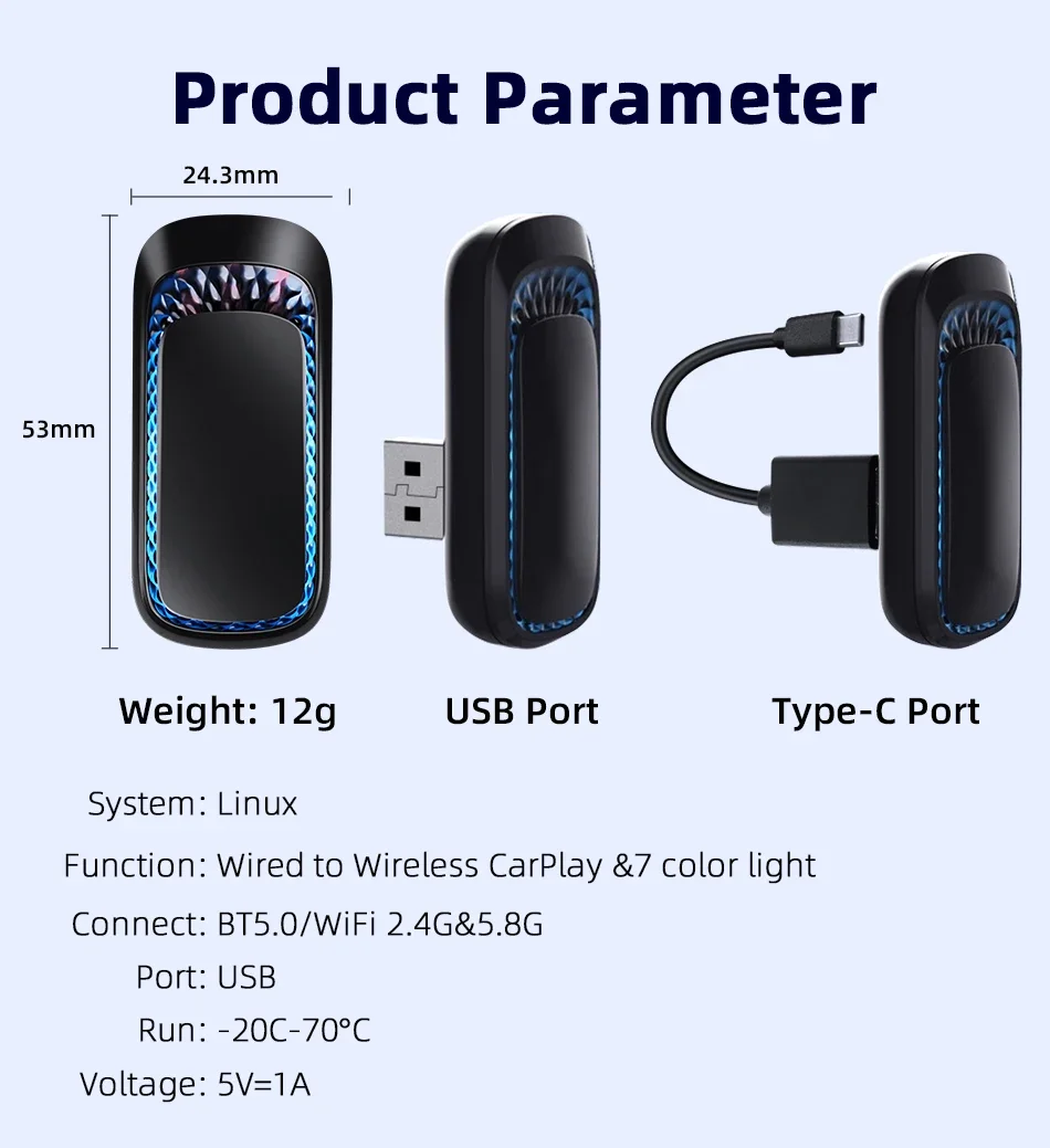 🚗【Portable Mini Wireless CarPlay Adapter】Compact and lightweight, this wired to wireless carplay adapter fits easily in the palm of your hand or pocket, making it easy to place anywhere in your car. The wireless carplay allows you to get rid of tangled cables and make the car interior tidier. The bluetooth carplay adapter is plug and play and does not require any additional programs to be downloaded.