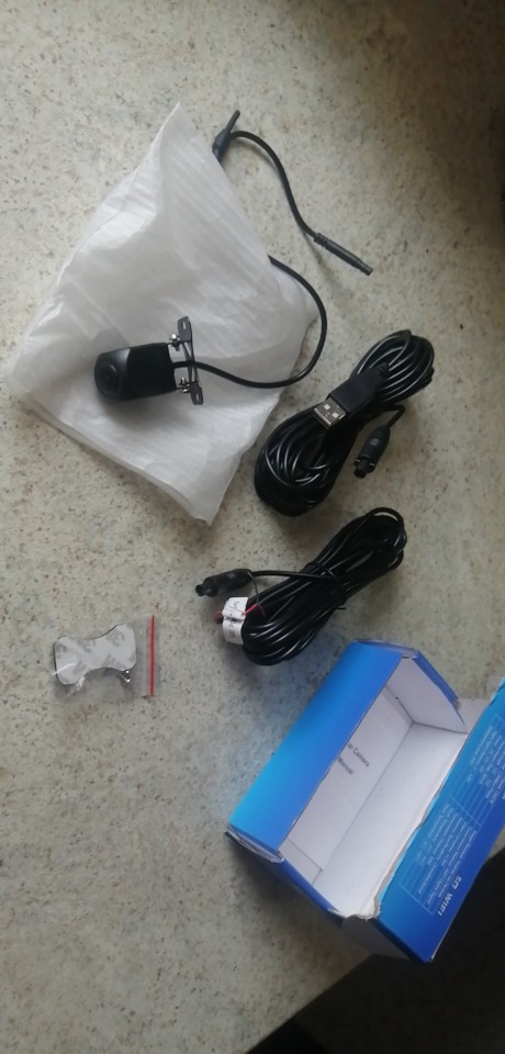 Too about 1.5 weeks to arrive to Australia. Inside the box, camera 5 metres cable with usb and another 5 metres cable to hard wire to the battery or fuse box. The 5 metre usb cable is sufficient and easy without worrying to tap in a fuse box or connect it to the car battery. Quality of camera is 720P it does the job when i use it for forward parking, so i don't need the highest resolution. You can save and vies photos and videos via app that you download. Overall, i highly recommended the product Highly recommended store