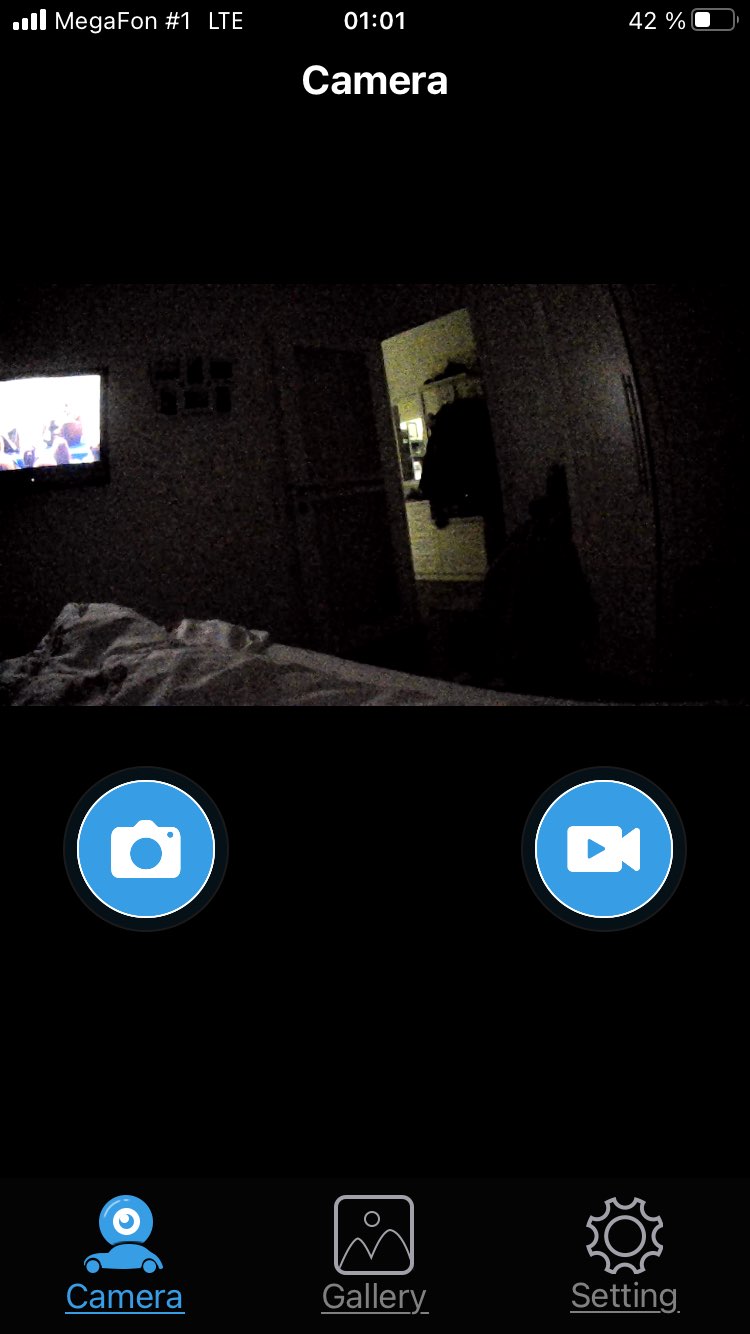 The resolution is weak. For the parking lot will go. On two smartphones on the Android network with the camera does not see. The third phone network found, and the application does not find. Manually, the network is not created. I found an iPhone. Connects via joytrip app. Powered by either 12 volt wire or any USB power supply with a second cable. Create via settings Wi-Fi network with car-20d9fa. Exit the settings, go to the app. The picture will be mirror by default. The layout can be removed, the mirror can be deployed. No more infusions. You can take a photo or record a video. Meters Ten signal stable, further disappearing