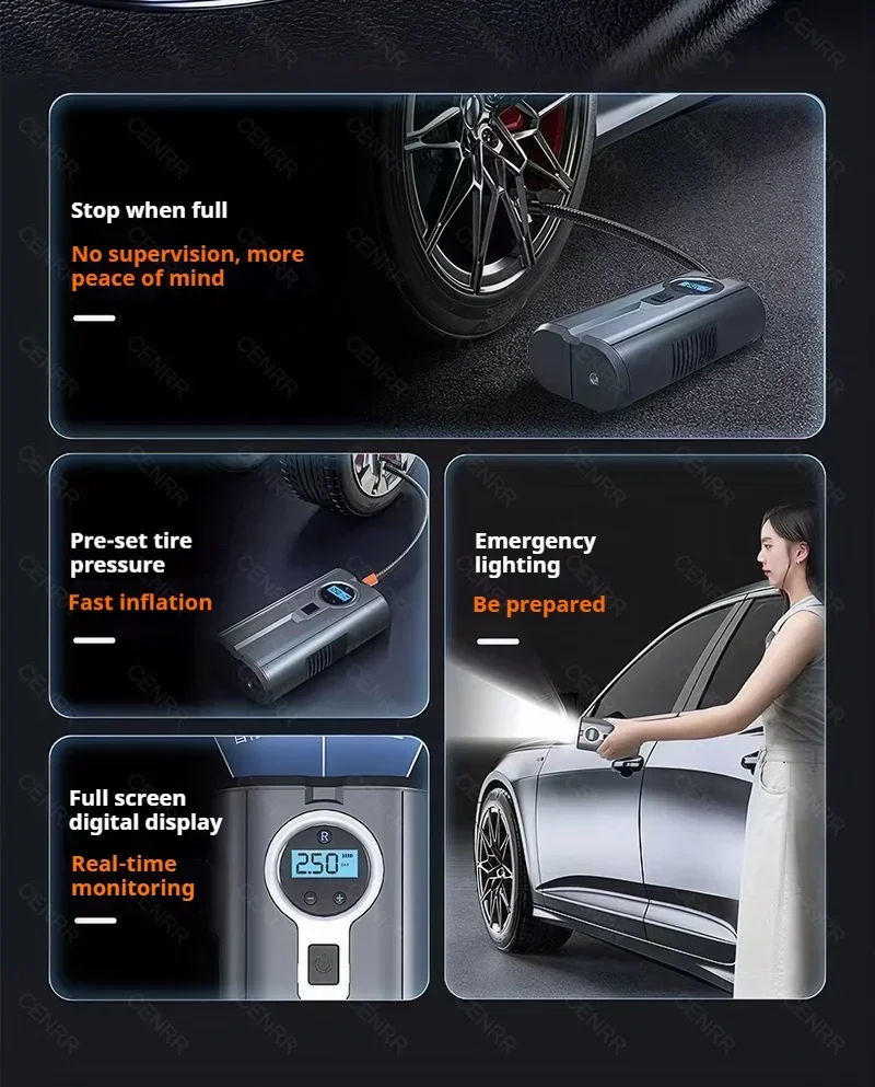 Car Electric Air Pump Wireless Tire Inflator Portable Air Compressor Digital Air Injector For Car Tyre Motorcycle Bike Boat Ball
