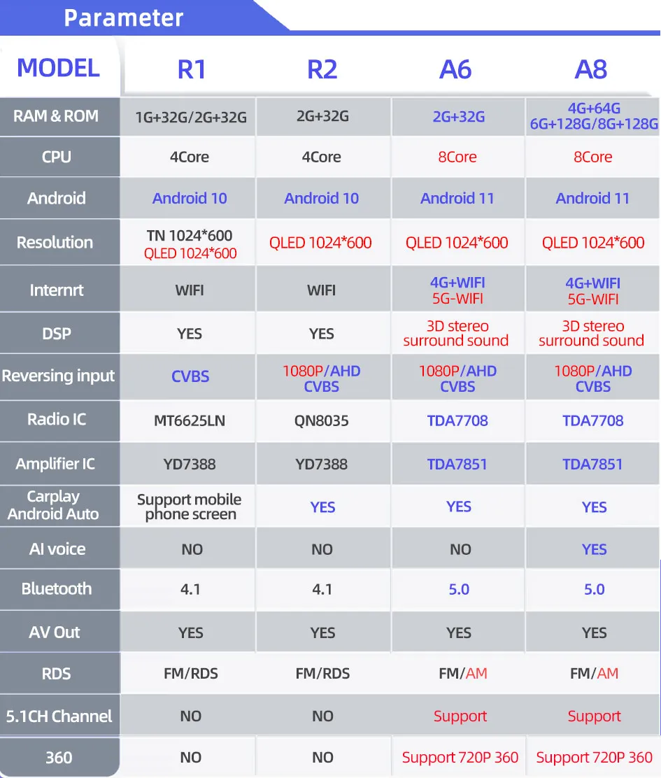 1. Built-in Carplay/Android Auto (R2/A6/A8 Model only): stable and easy to use