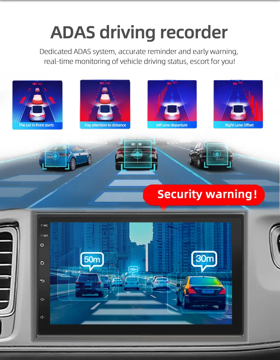 ADAS driving warning function, if you are too close to the vehicle in front or deviate from the current driving track, it will alarm and remind, making your driving safer!