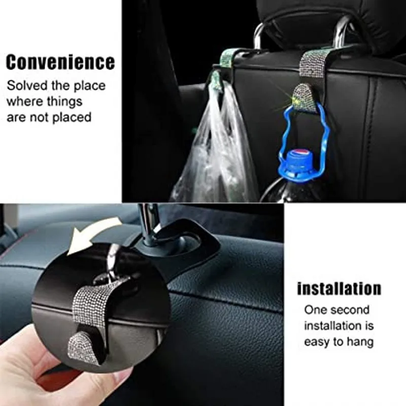 Upgrade high-quality diamond-encrusted hooks to make your car stylish and beautiful.