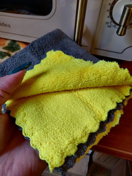 Nice napkin. Fat. Quality is good. Not yet tried in cleaning
