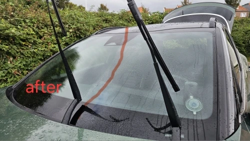 It really works. There were waterstone stains on the glass, no matter how you wiped the glass, they still remained, also clearly visible the border where the wipers don't wipe and during rain it was annoying that almost nothing is visible in that part of the windshield. After the first use, I am really surprised, it works, satisfied with the result. After rain, it will be even clearer and visible.