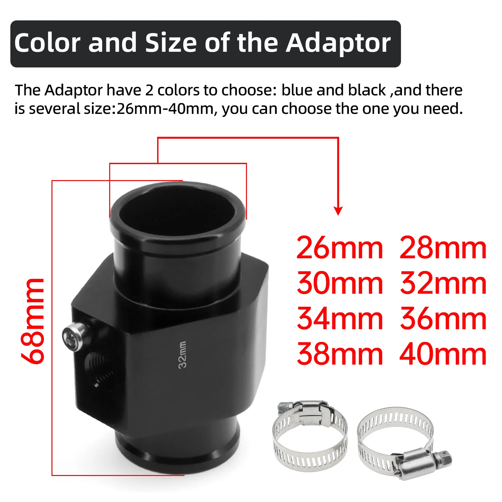 Car Water Temp Gauge Radiator Temperature Water Temp Joint Pipe Sensor 40mm 38mm 36mm 34mm 32mm 30mm 28mm Hose Adapter