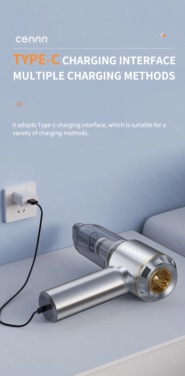 CENRR 360000PA Mini Car Vacuum Cleaner Cordless Powerful Wireless Car Cleaner HandHeld Portable Vacuum Cleaner Cleaning Machine
