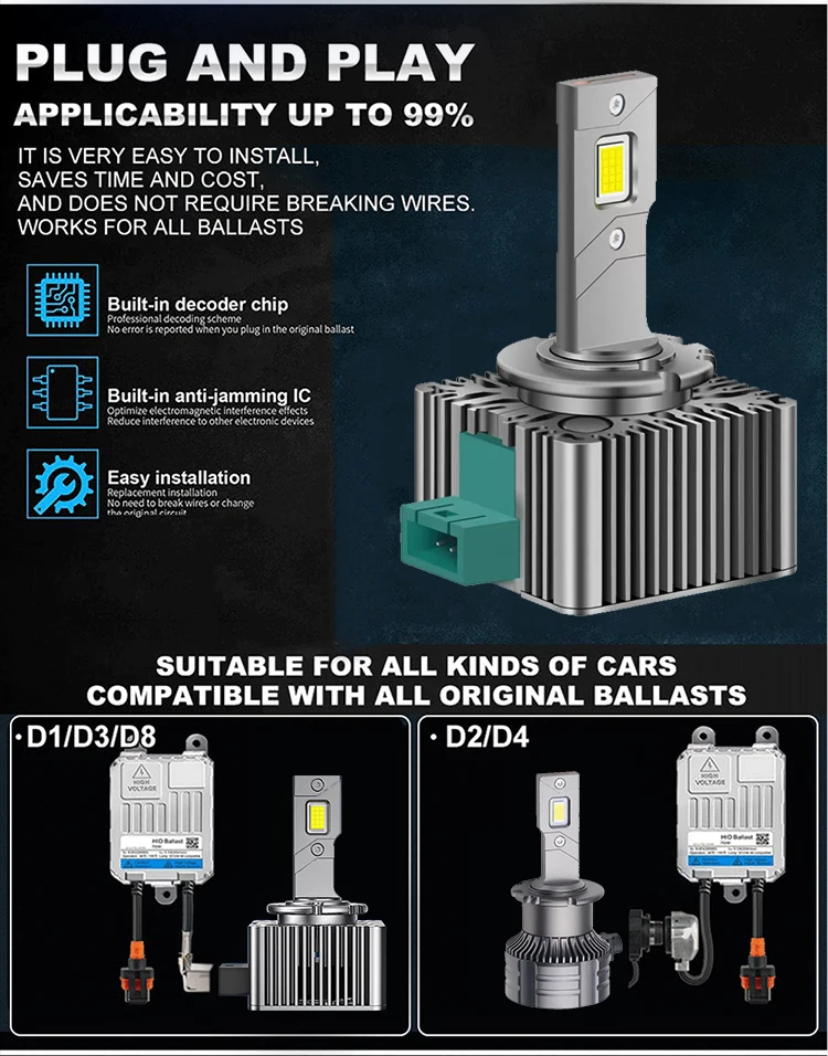 D SERIES D1S D3S LED Car Headlights Bulbs D2R D2S D4R D4S D5S D8S Turbo Lights 6000K 70W Auto Lamp Plug&Play HID Conversion Kit