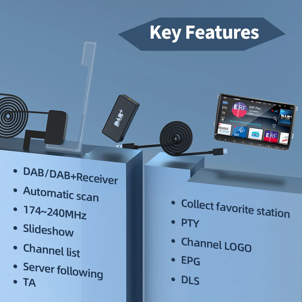 DAB+ Antenna for Android Car Radio With USB Adapter GPS Stereo DAB Receiver Player Automatic Scan Support Channel List LOGO
