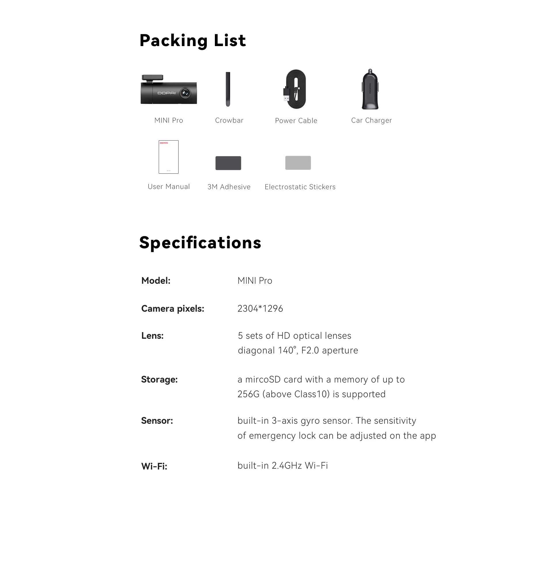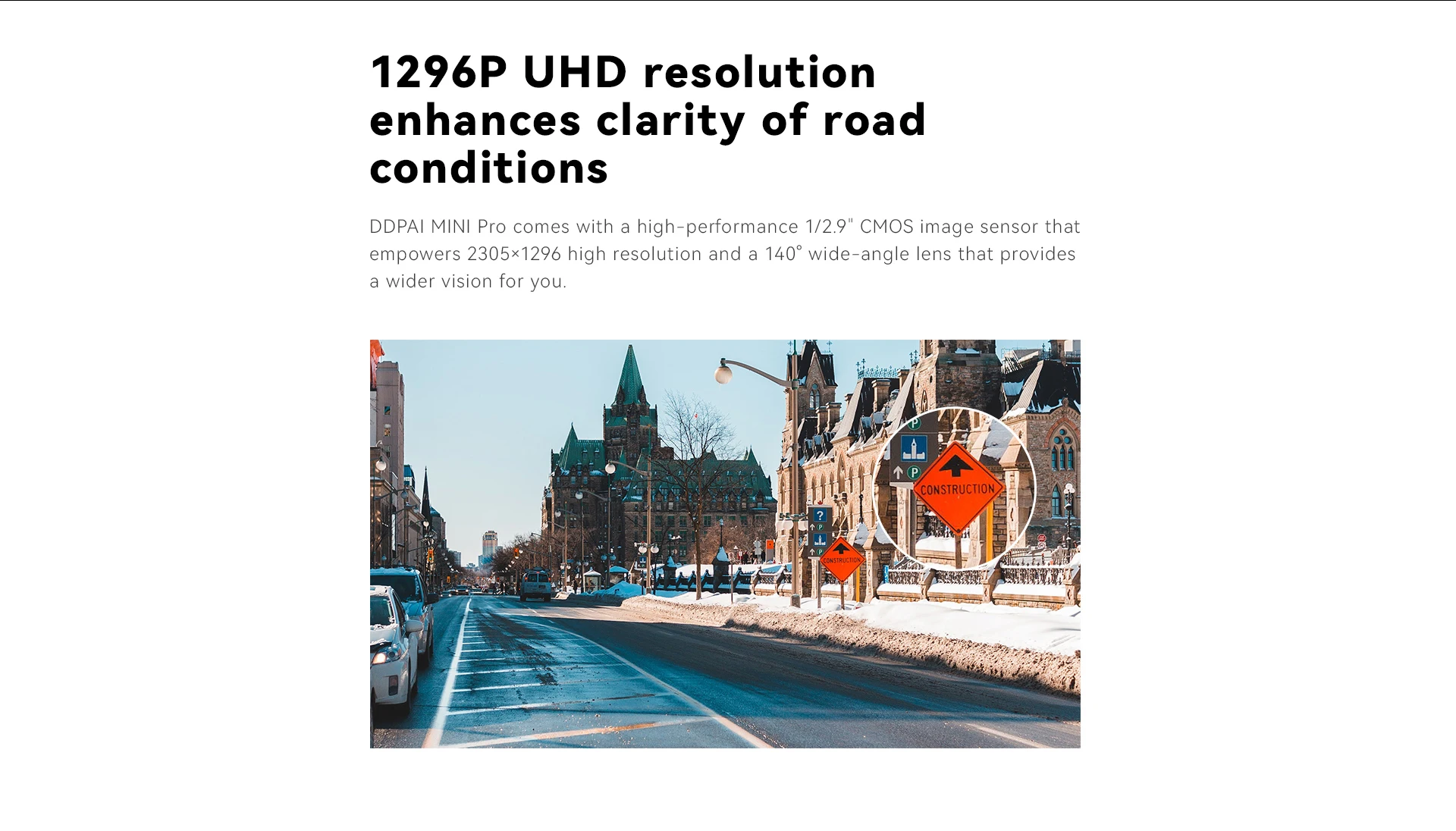 DDPAI MINI Pro has a high-performance 1/2.9″ CMOS image sensor that empowers 2304×1296 high resolution and a 140° wide-angle lens that provides a broader vision.