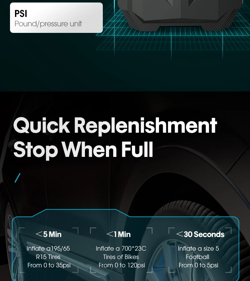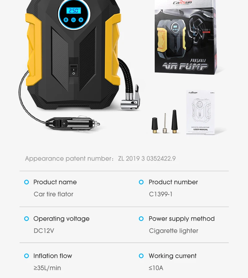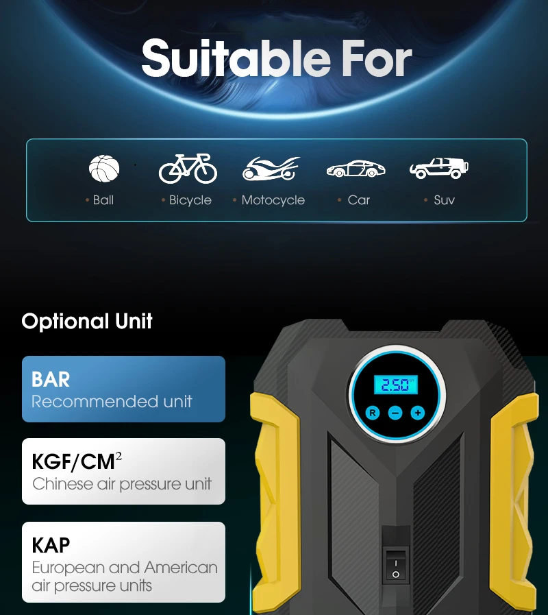 Carsun Digital Tire Inflator Car Portable Air Compressor Pump 150 PSI Car Air Pump With LED Lamp For Car Bicycles Motorcycles