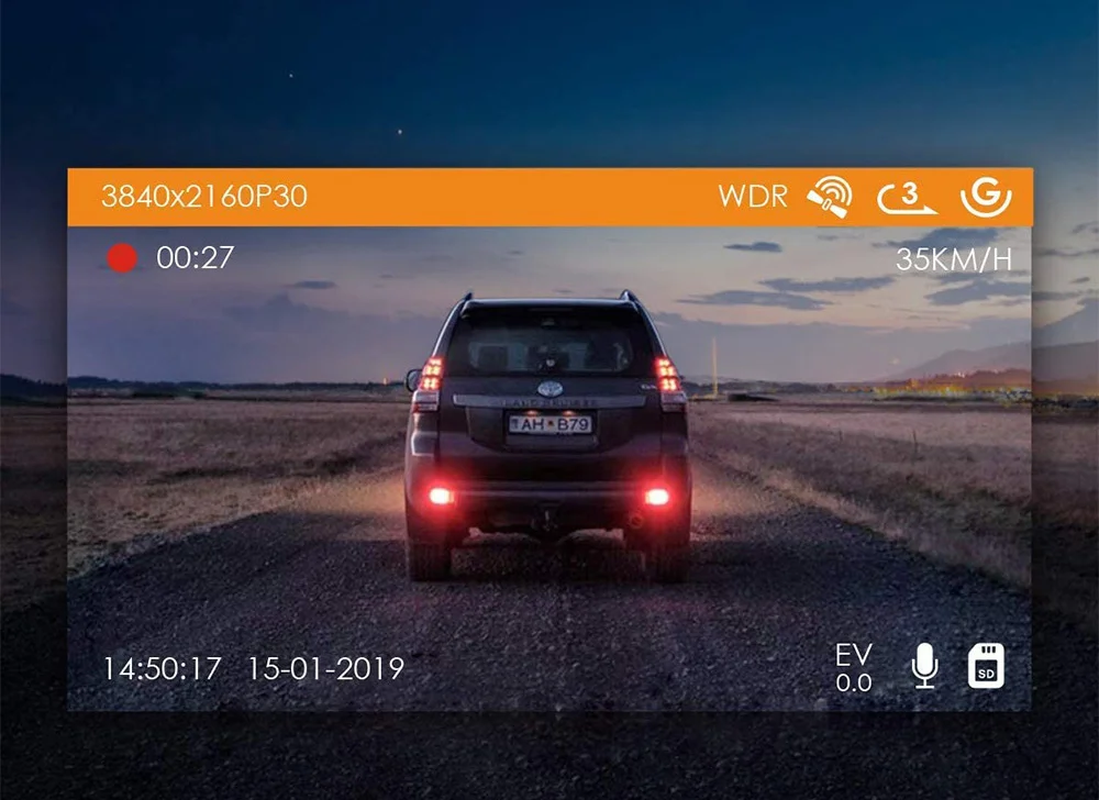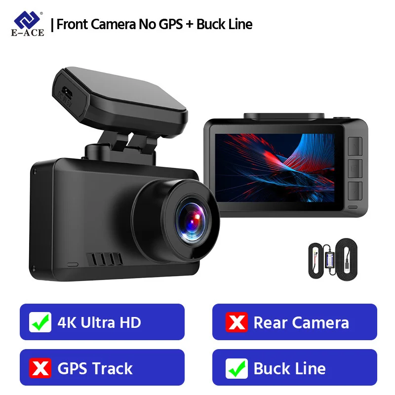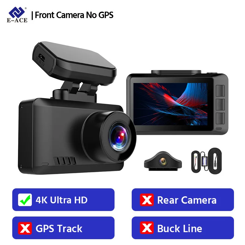 E-ACE B44 Dash Camera can record videos up to a resolution of 2160p (Ultra-HD).170° Ultra Wide A+ lens Viewing Angle allows a wider viewing angle to capture those important details side. The WDR function optimizes video quality with wider light range and image details.