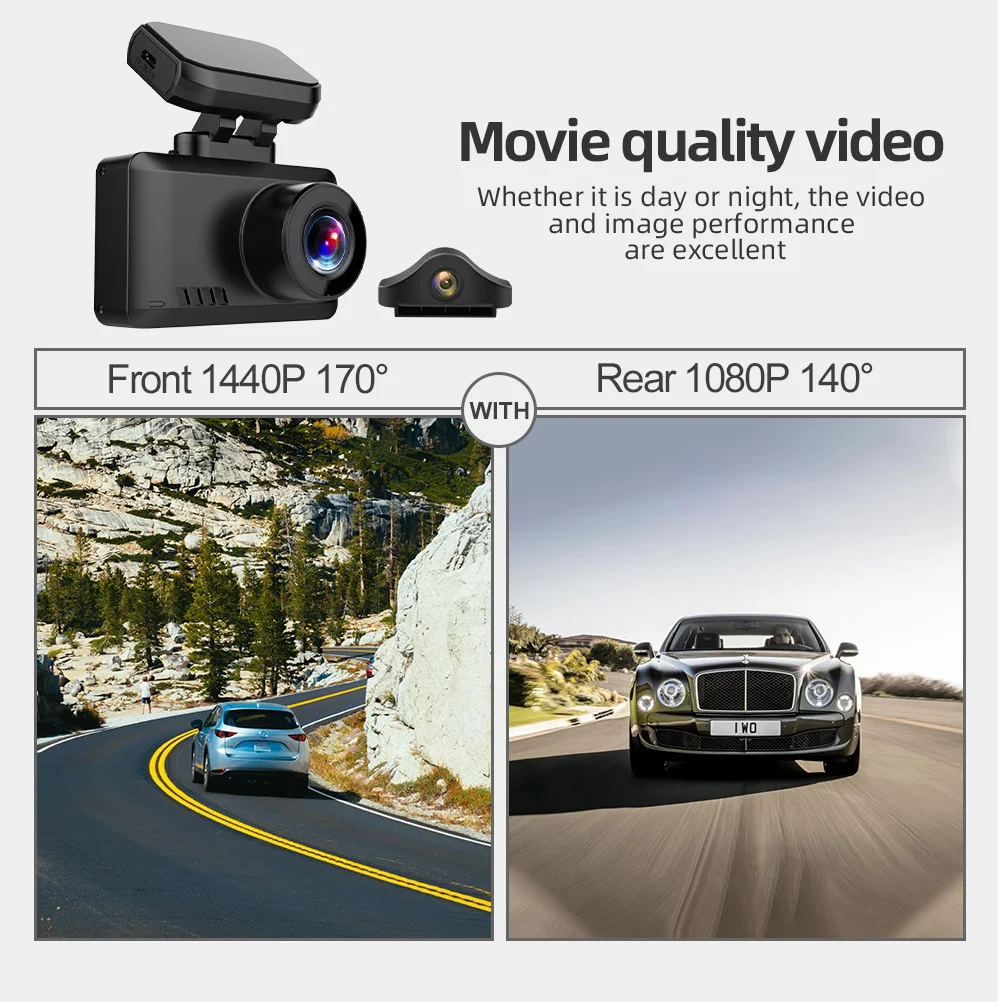 2.Dual Lens; Front: 2560*1440P@30FPS; Rear: 1920*1080P@30FPS